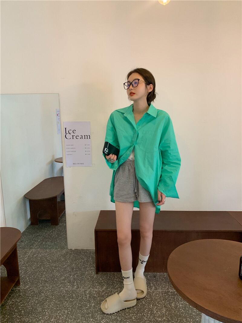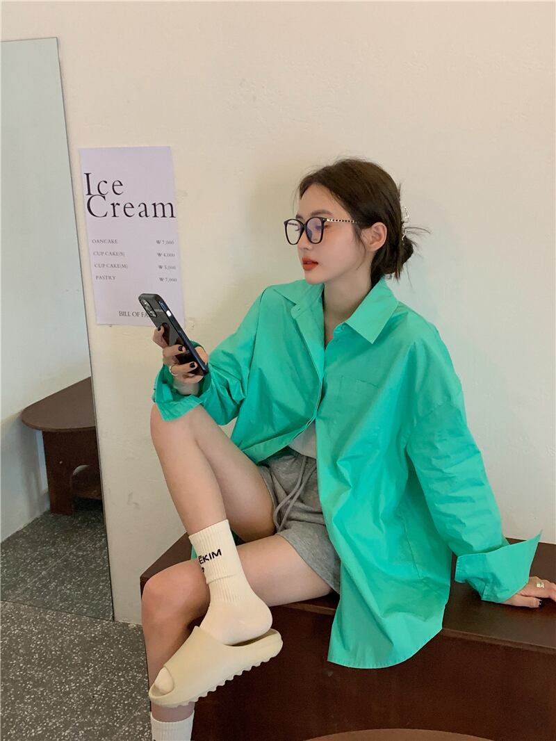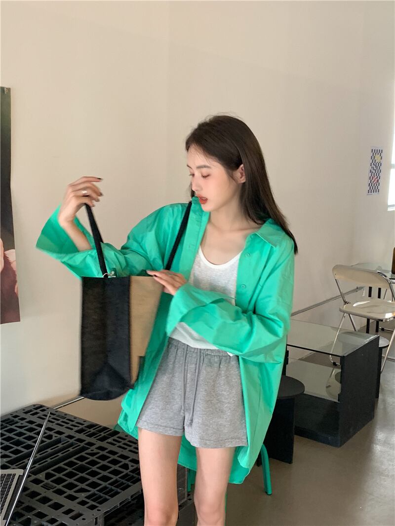 スタイルグリーンシャツ オータム薄手ジャケット トップス ロング 秋物 モンロー68994750961