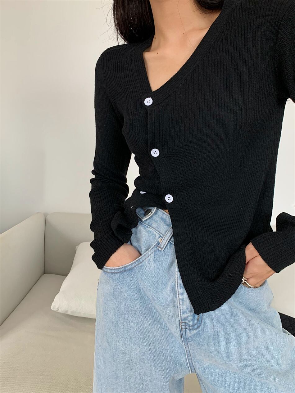 ブラックニットカーディガンオータム薄手セーター ジャケット ショート ロング 秋物 モンロー22884983979