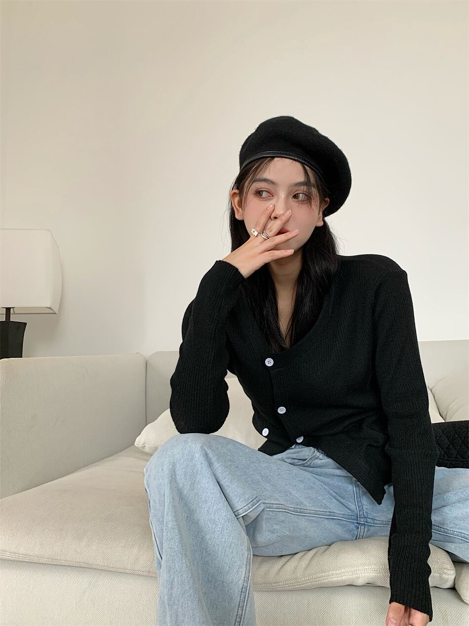 ブラックニットカーディガンオータム薄手セーター ジャケット ショート ロング 秋物 モンロー22884983979