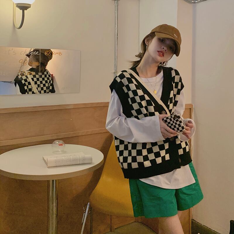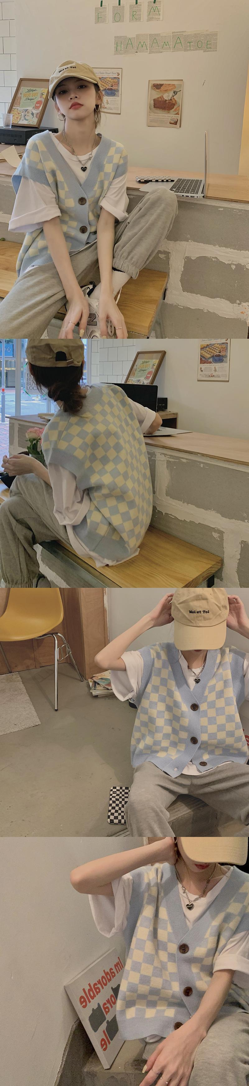 色:チェッカーボードベストブラック,チェッカーボードベストブルー,チェッカーボードカーディガンブラック,チェッカーボードカーディガンブルー