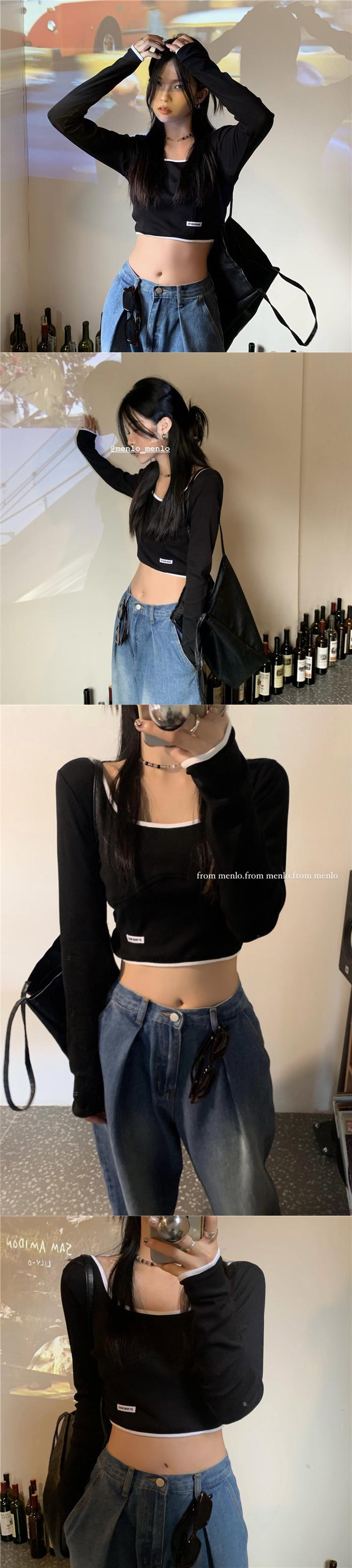 スリムTシャツ シャツ スプリングオータムショートトップス ロング 春物 秋物 モンロー61644260410