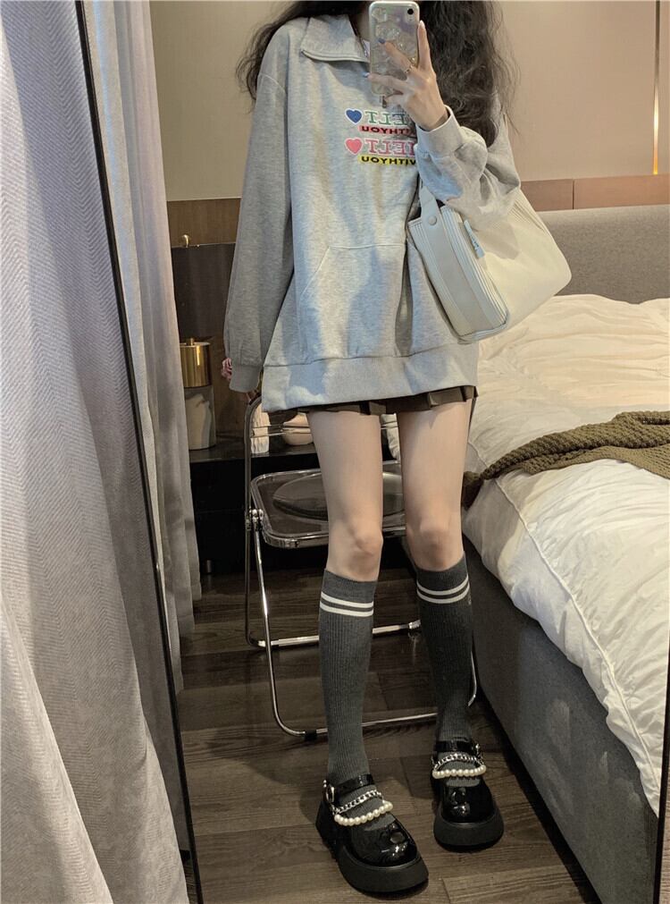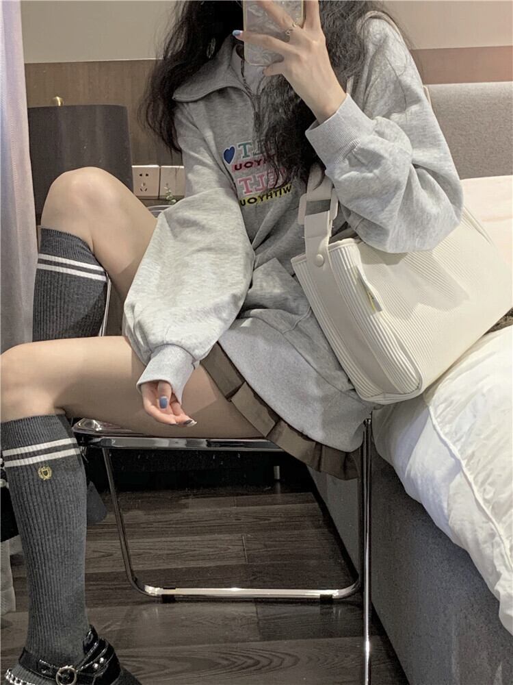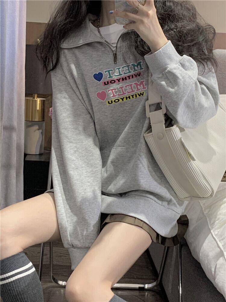 カラーセーター ジャケット オータムスタイルプリント柄シャツ ロング ストリート 秋物 モンロー47124953064