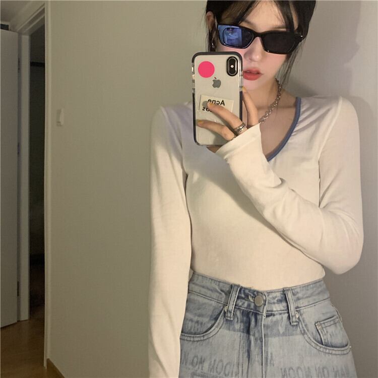スリムTシャツ シャツ オータム薄手 ロング 秋物 モンロー10504225682