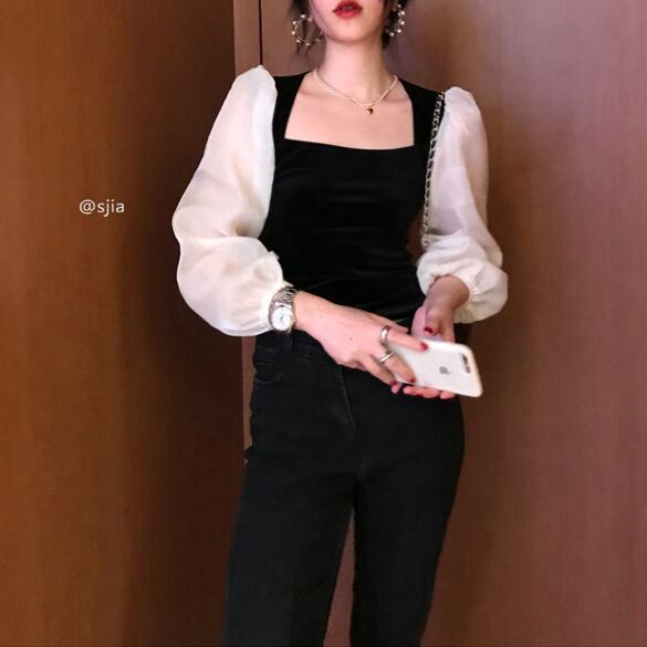スタイルカラーシャツ オータム薄手ショートトップス ロング 秋物 スクウェア モンロー17336329431
