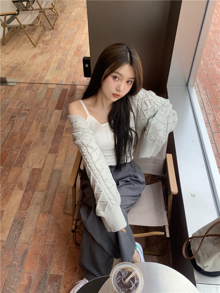 ルーズクロップドトップス ニットカーディガン ロング モンロー1029071836