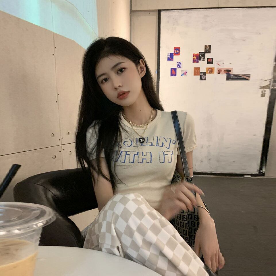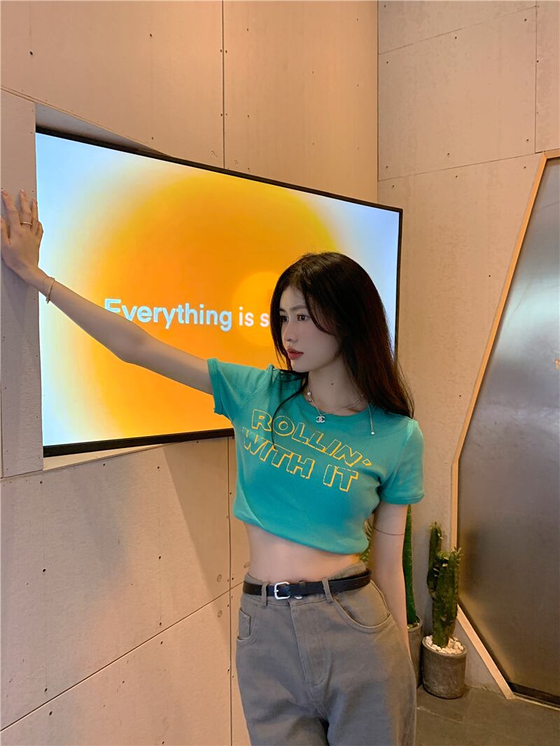 ブラックスリムショートTシャツ サマークロップドトップス コットン 夏物 ピュア モンロー78923280809