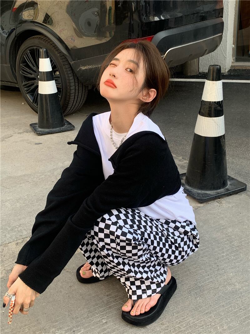 色:黒いズボン,ベージュパンツ,ベージュカーディガン,ブラックカーディガン