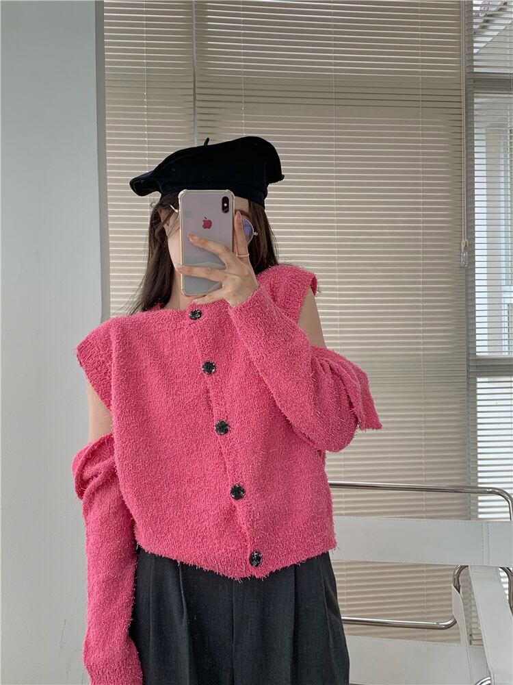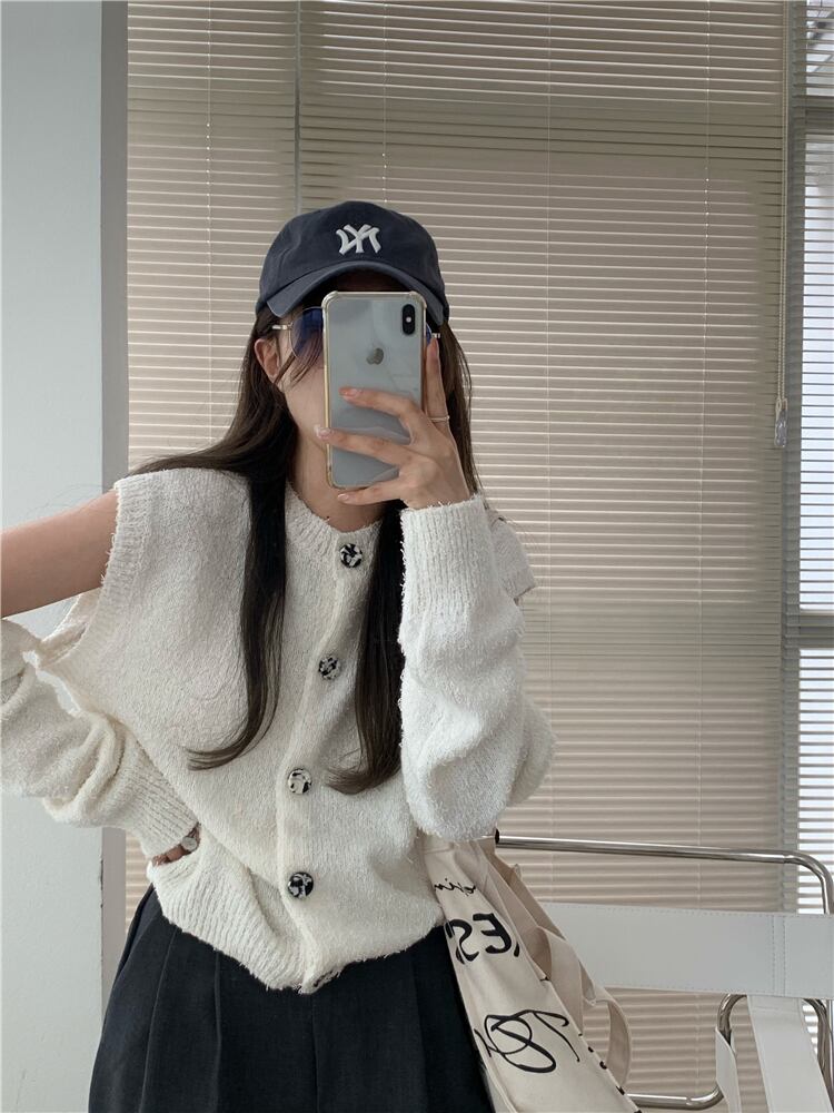 ニットカーディガンオータムラウンドネックカジュアルジャケット ロング 秋物 Oネック モンロー72733886633
