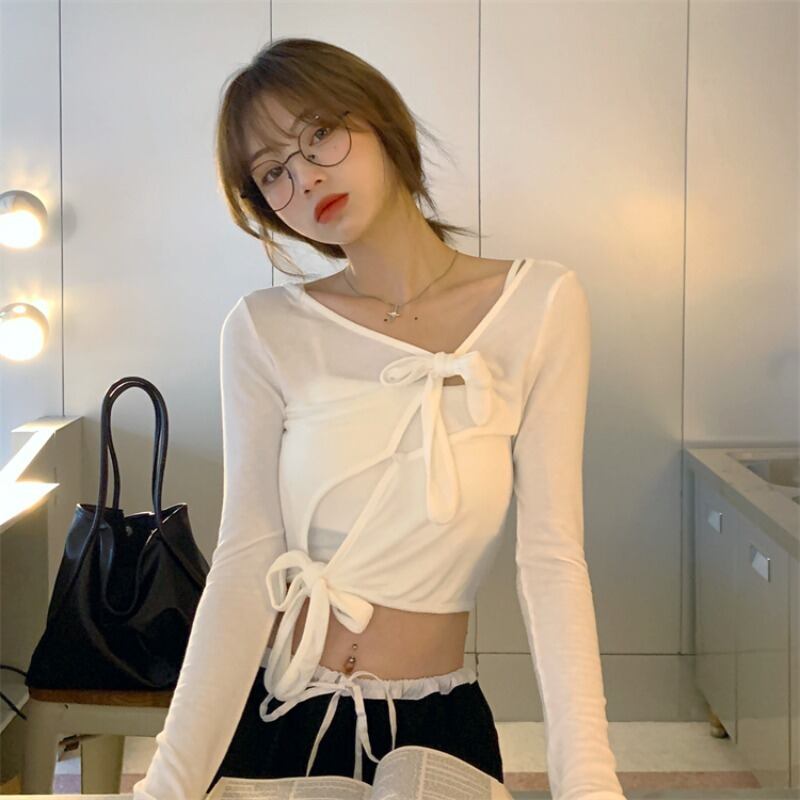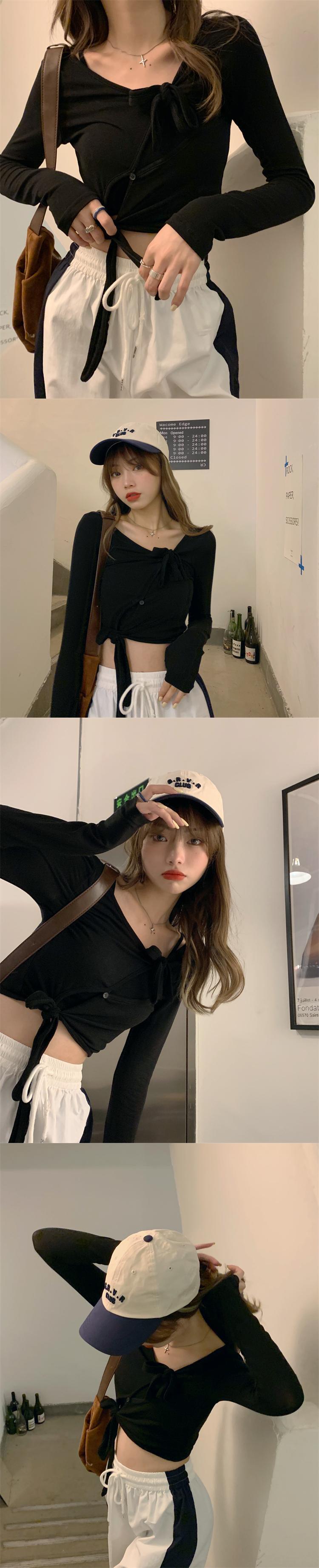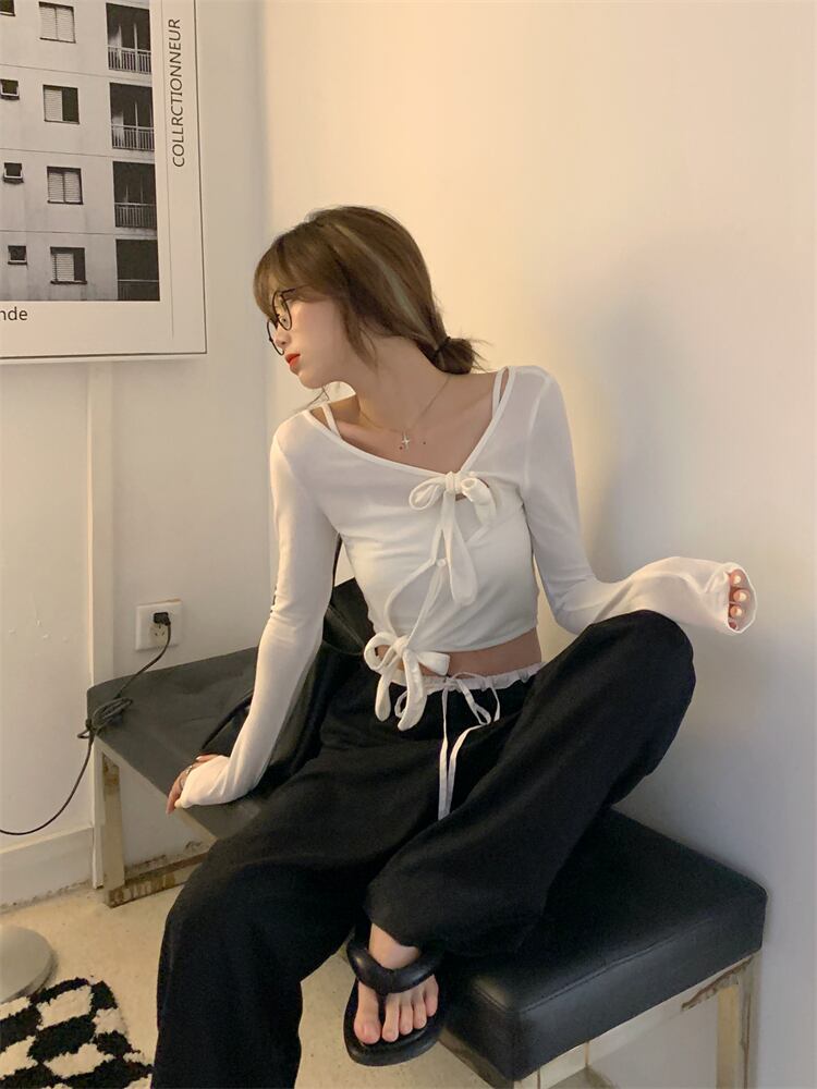 ブラックスリムTシャツ シャツ オータム薄手ショート ロング 秋物 モンロー90244958677