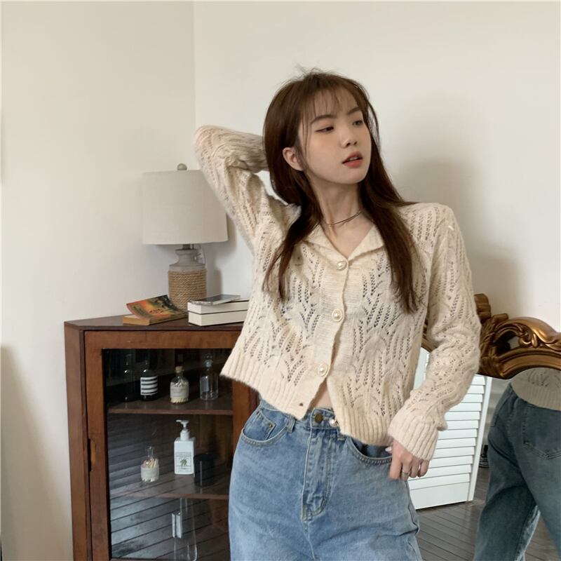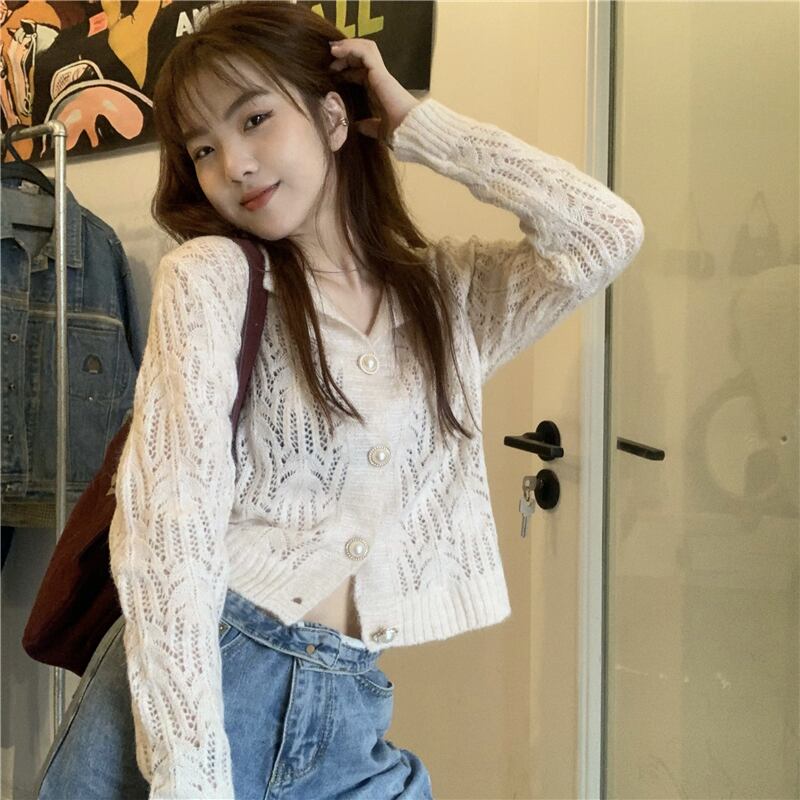 ニットカーディガンオータム薄手セーター コート ショートトップス ロング 秋物 モンロー41580689246