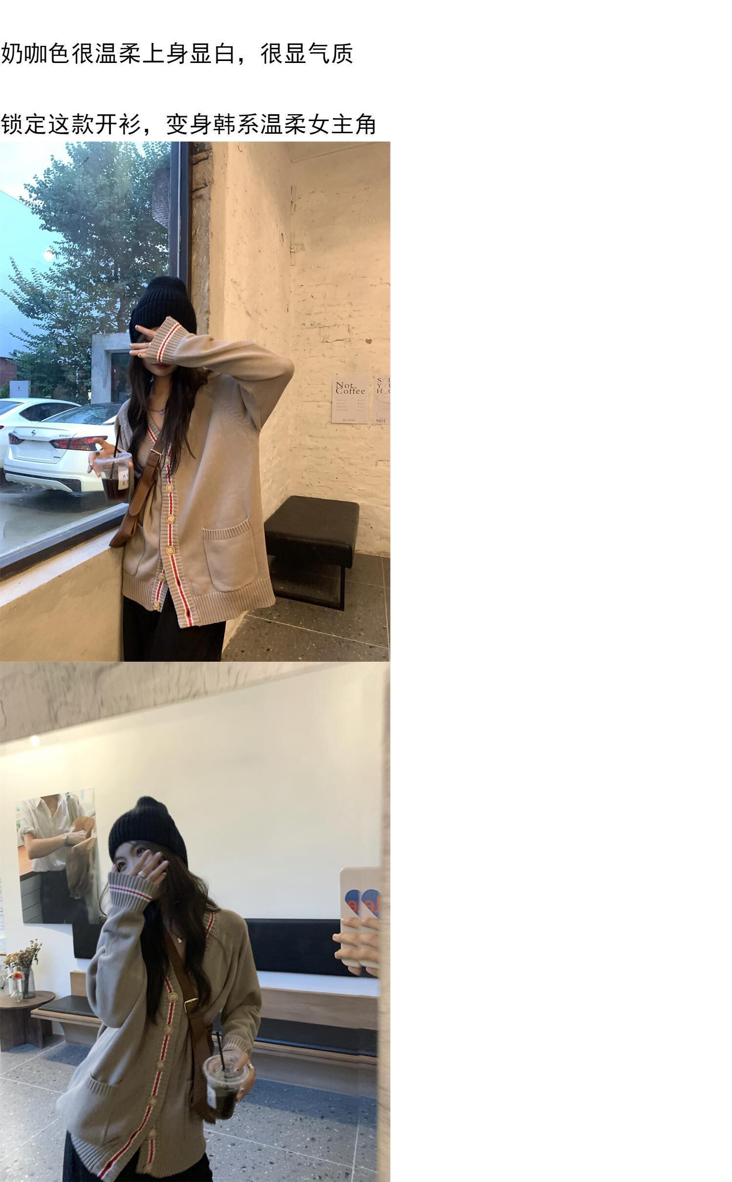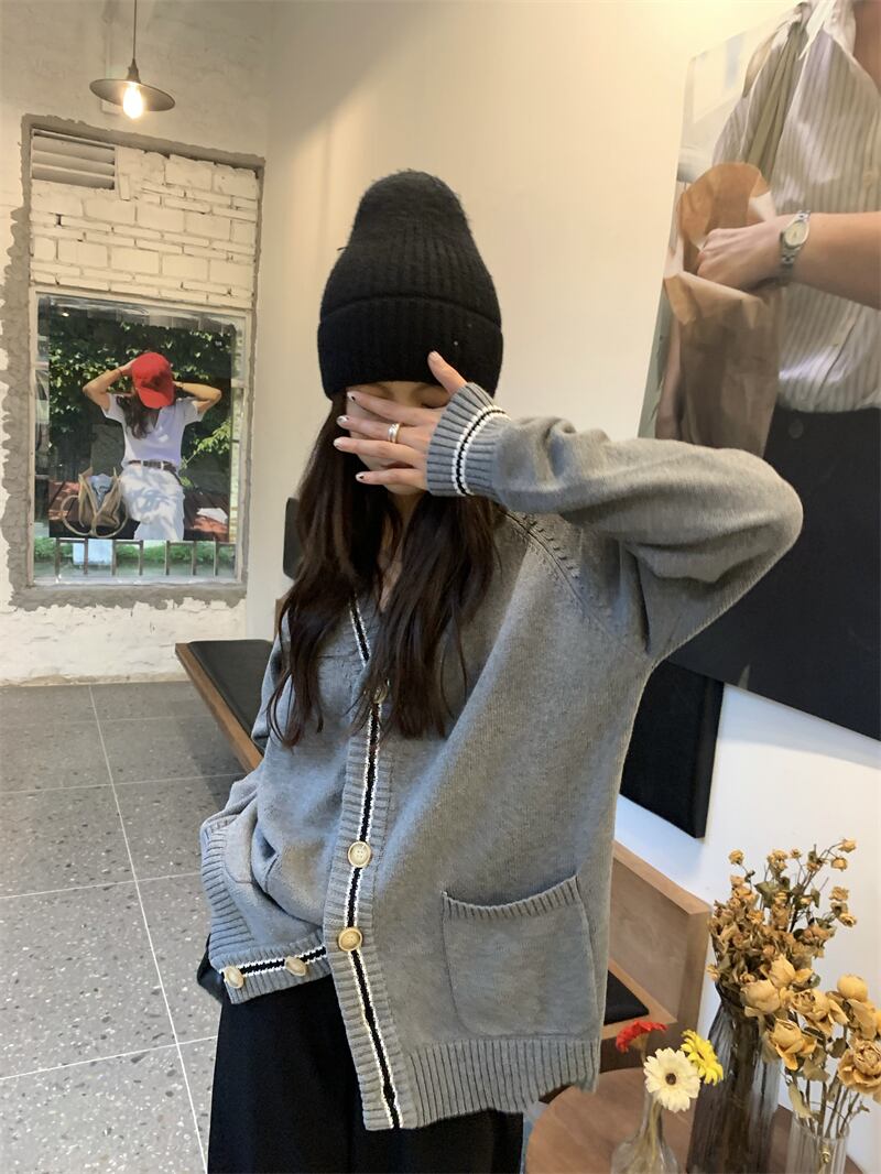 オータムVネックセーター カジュアルルーズトップス コート ロング 秋物 モンロー19418994505