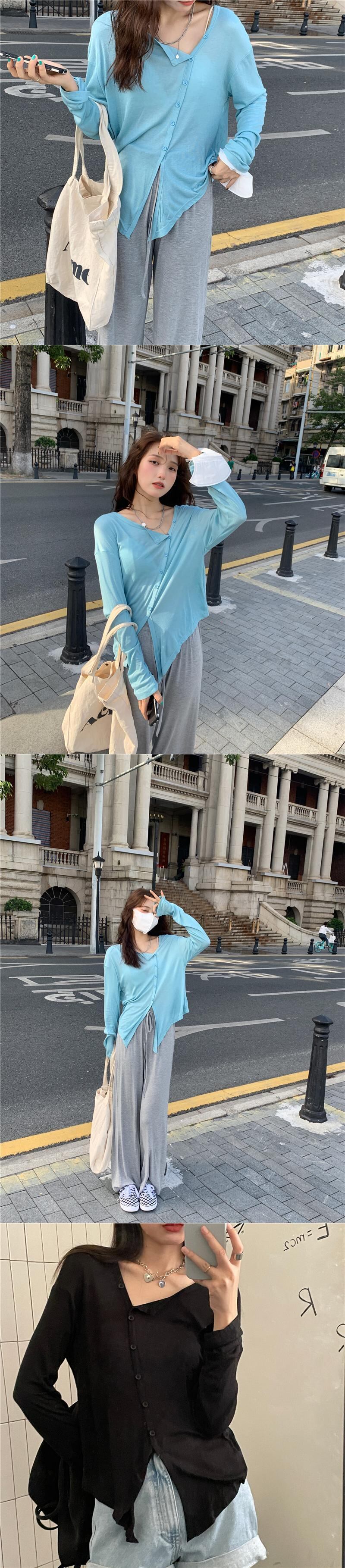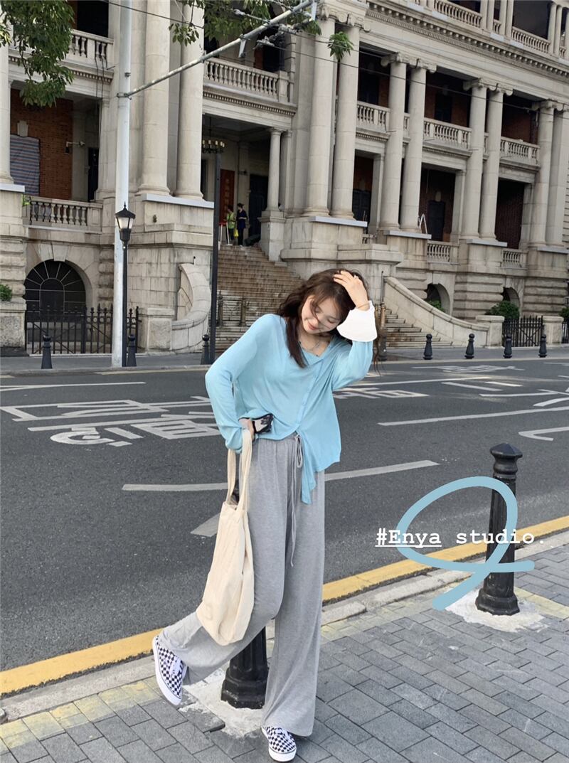 ブルー薄手Tシャツ ルーズサマー ロング 夏物 モンロー72202055669