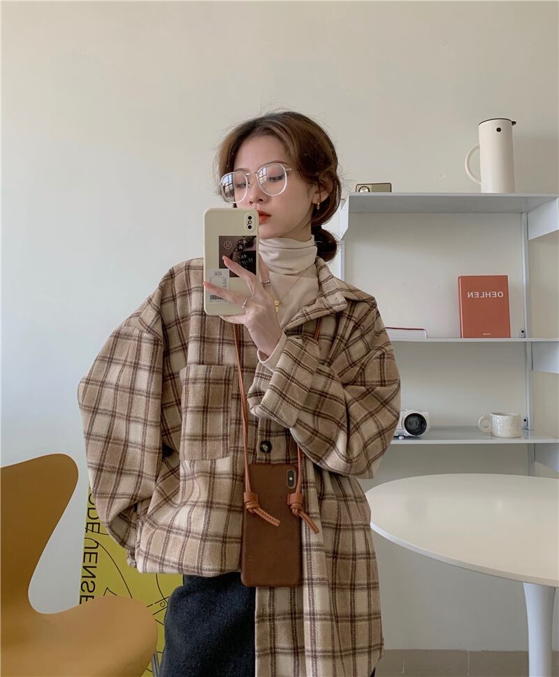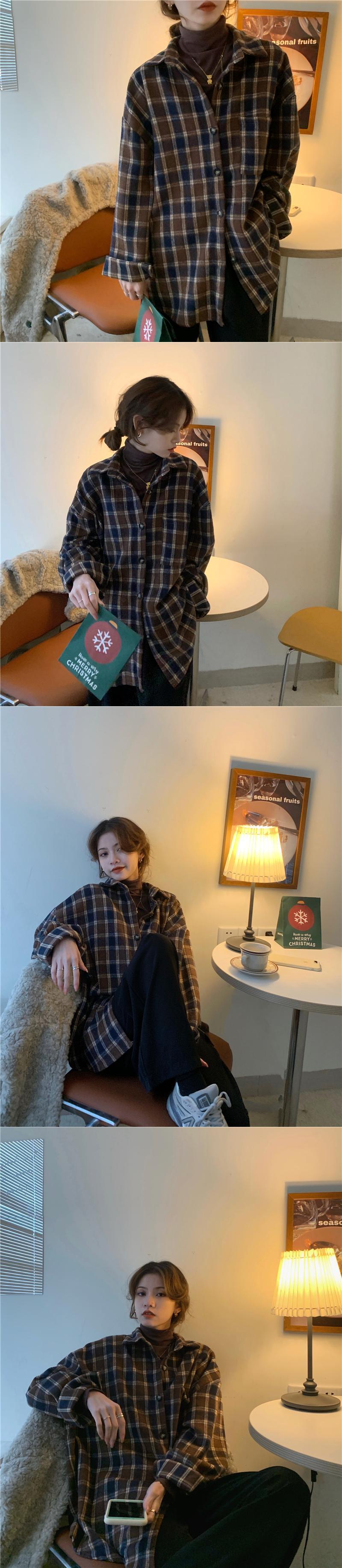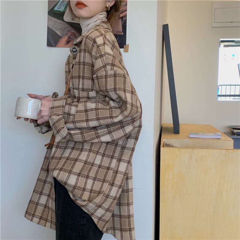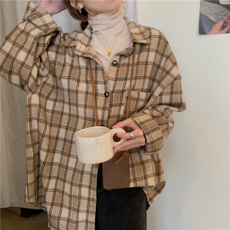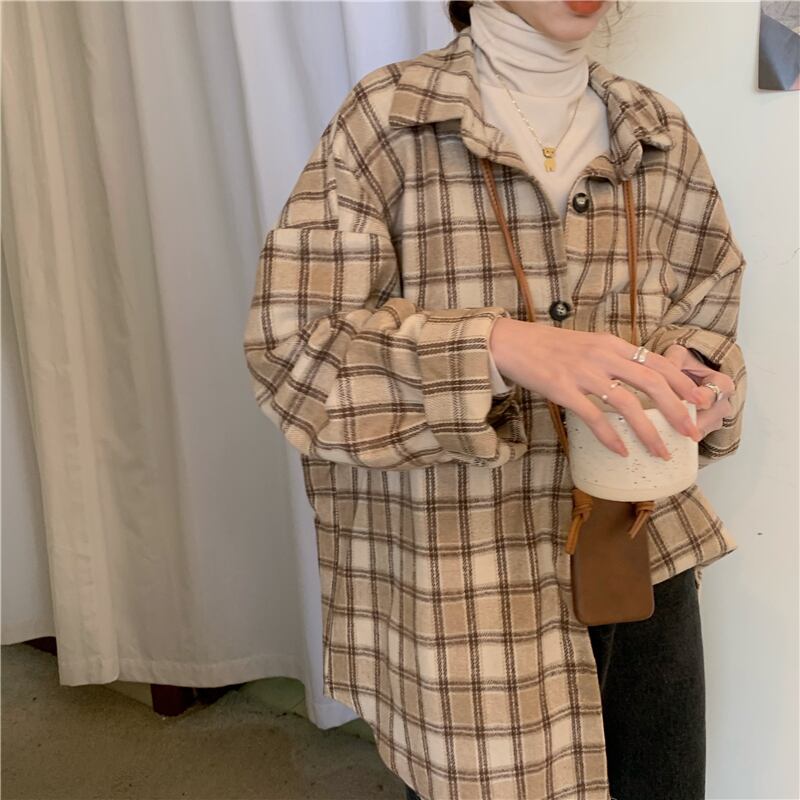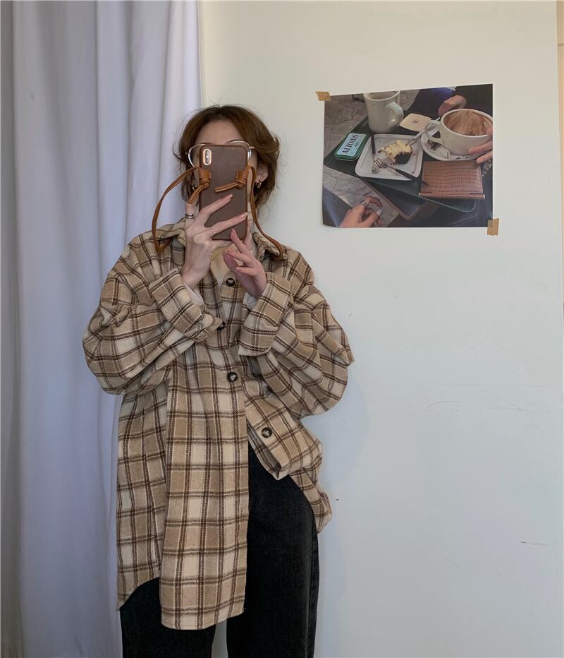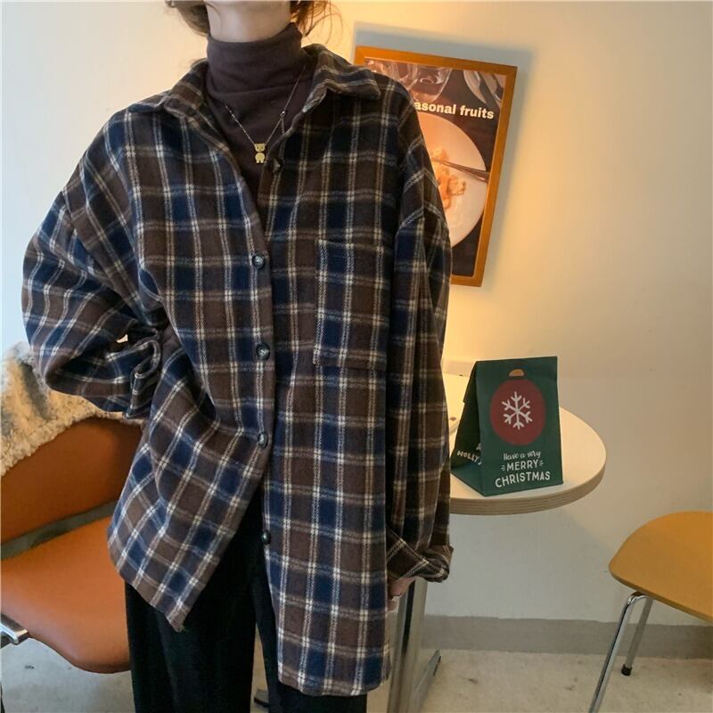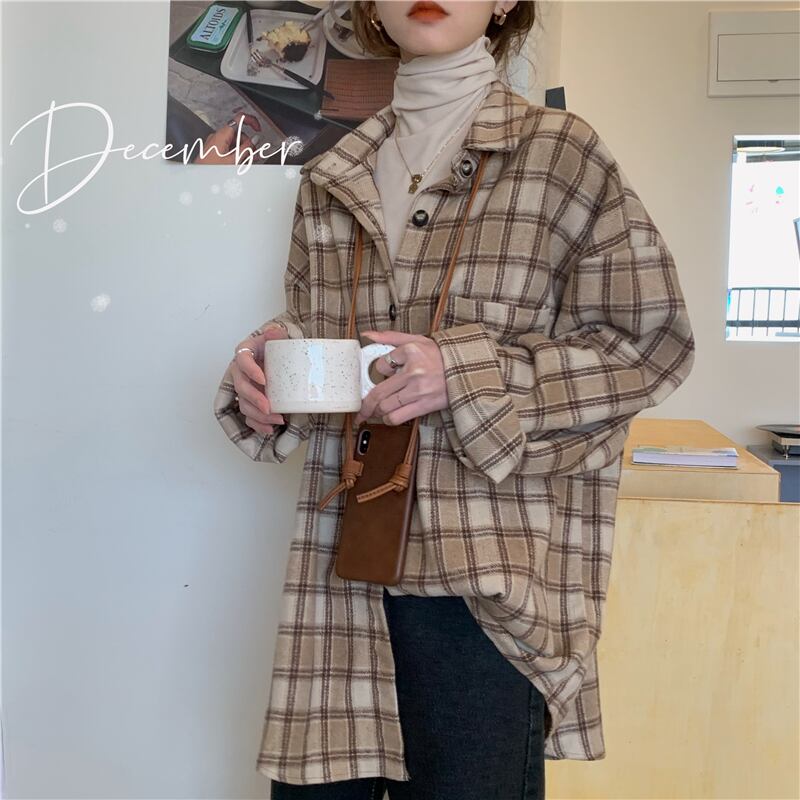 スタンダード格子柄シャツ オータムルーズジャケット スタイルトップス ロング レトロ 秋物 モンロー29420260584