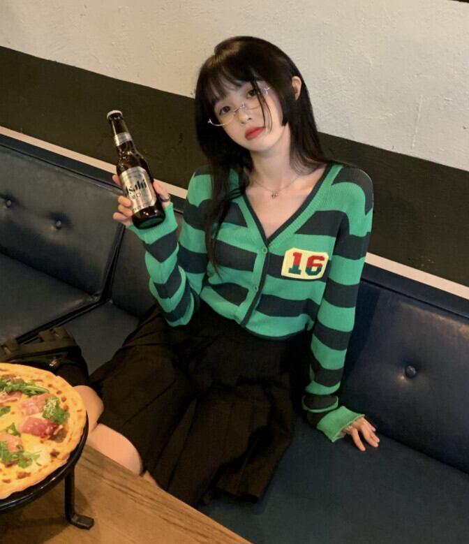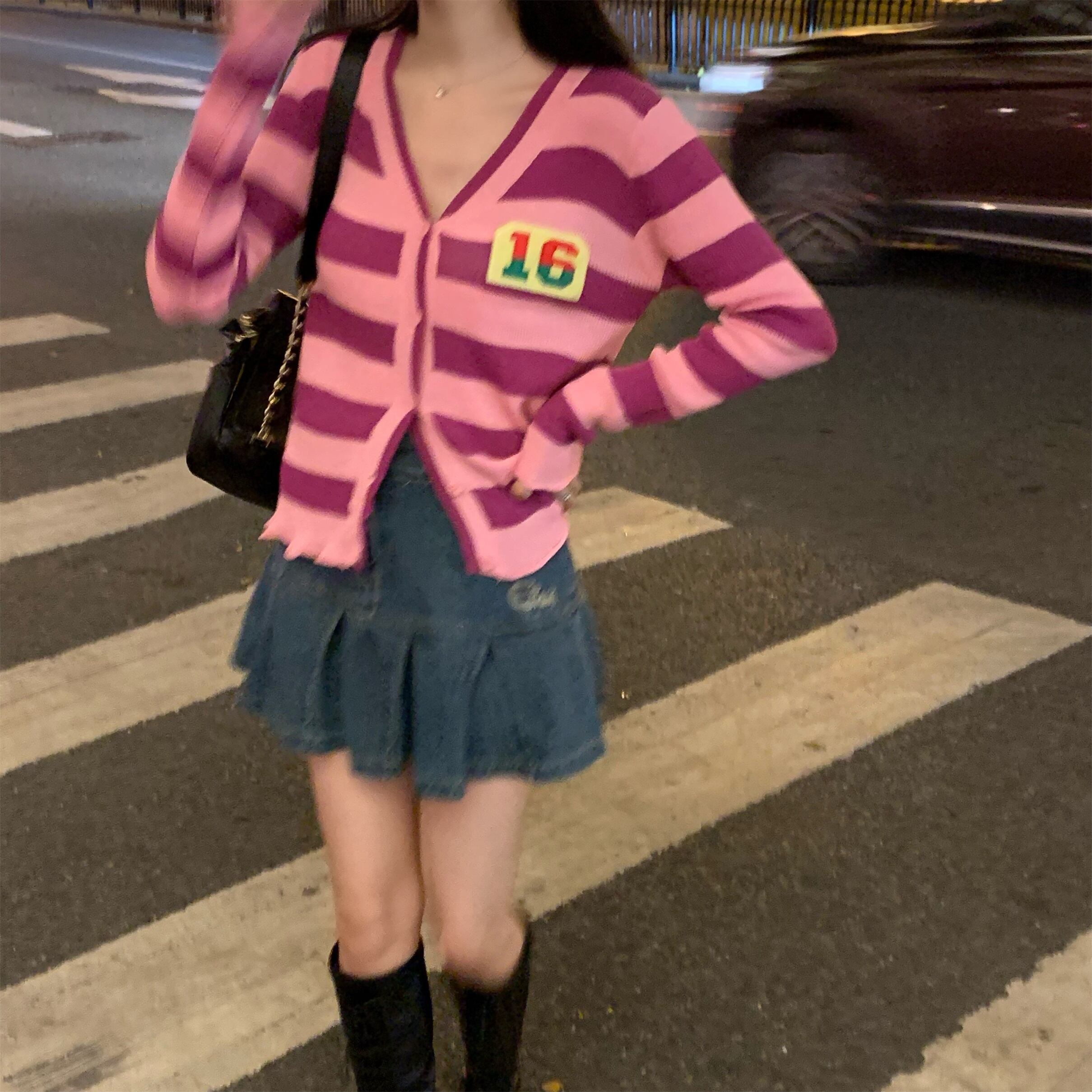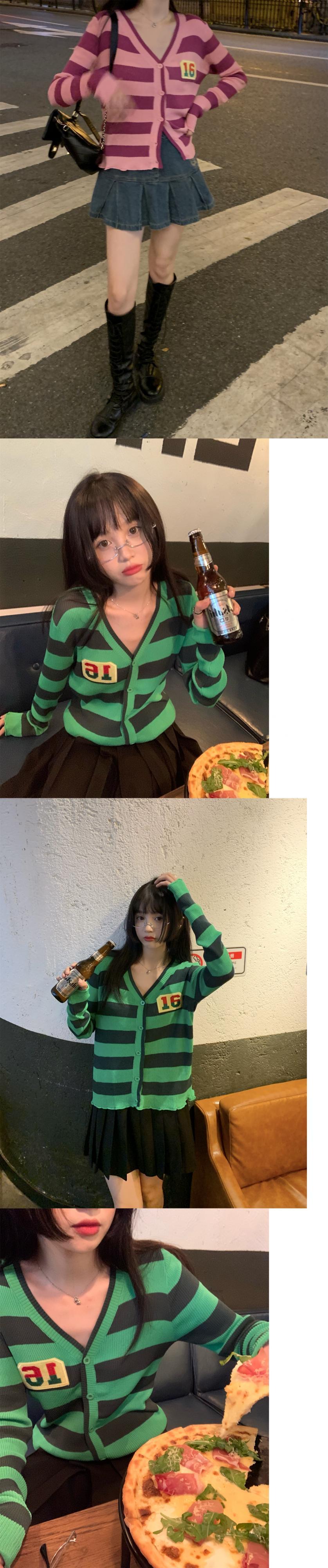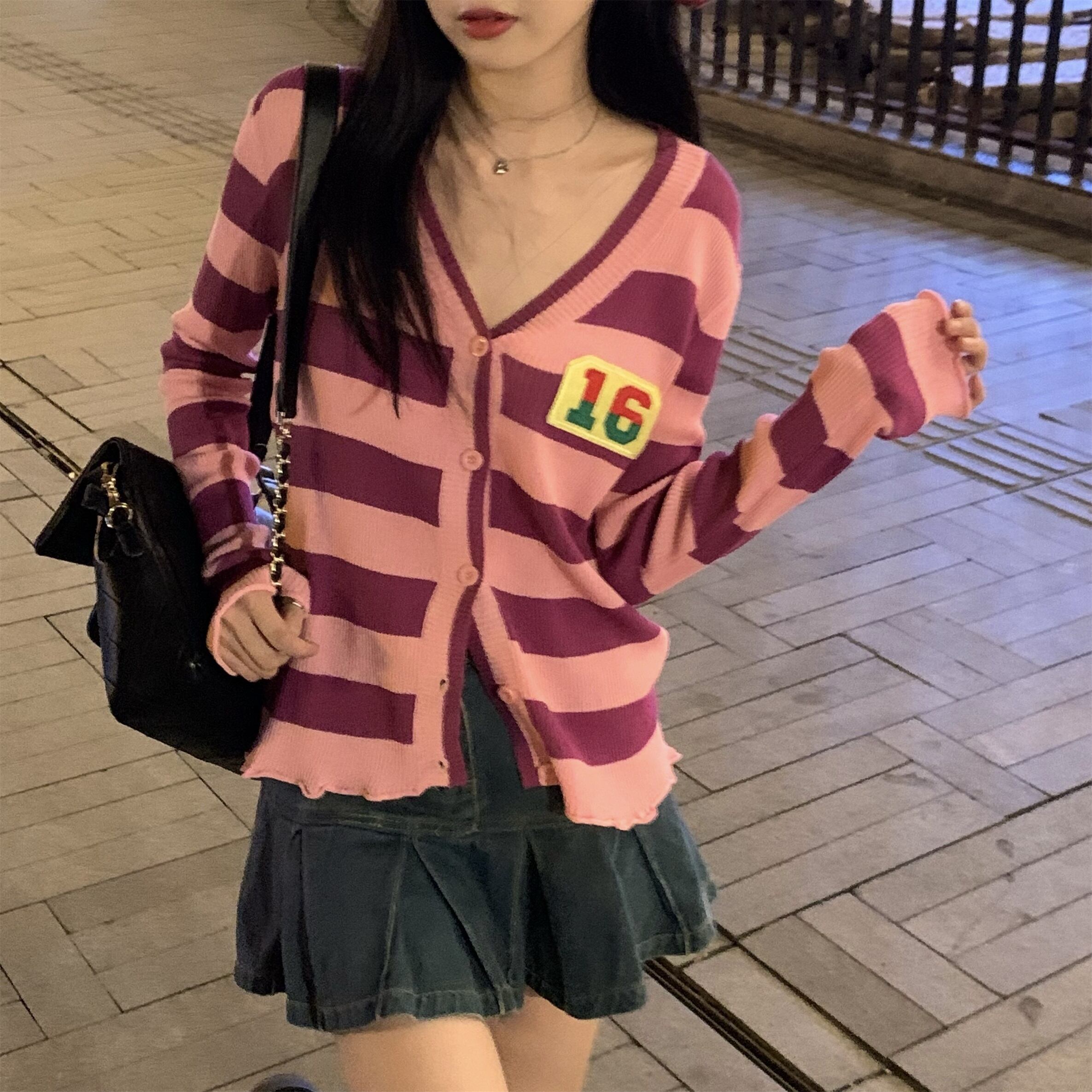 スタイルストライプVネックニットカーディガンオータム薄手セーター ジャケット トップス ロング 大人ガーリー スウィート キュート カジュアル 秋物 モンロー32739465741