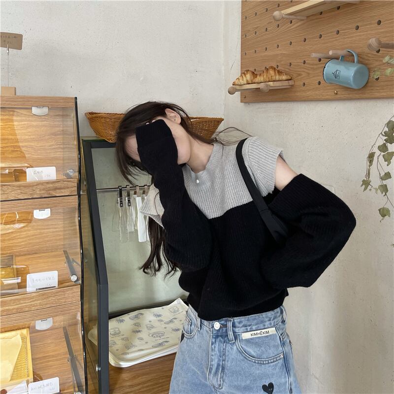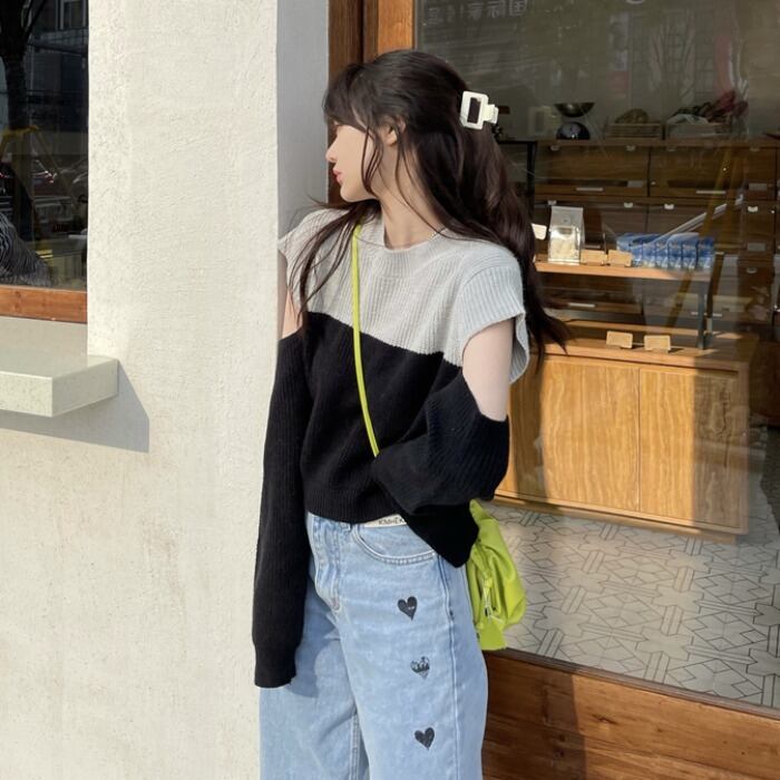 カラーニットセーター スプリングスタイルショートトップス ロング 春物 モンロー33791993770