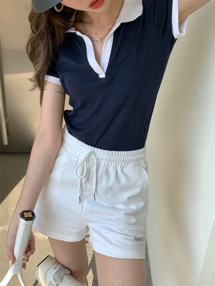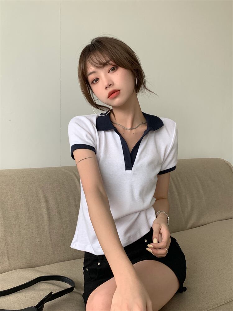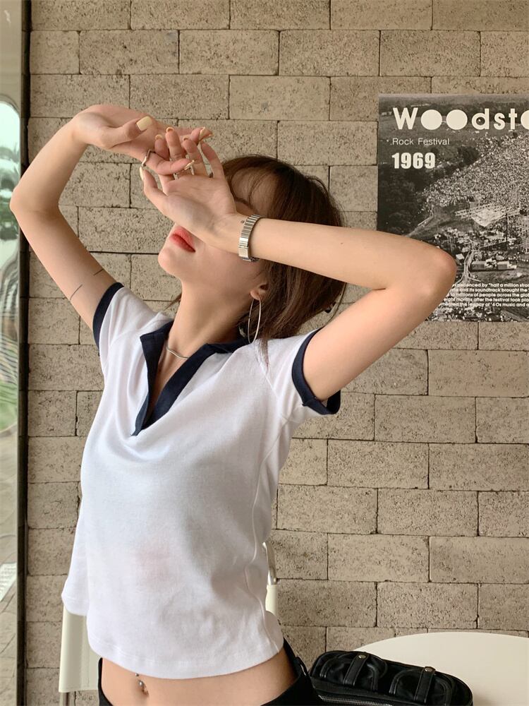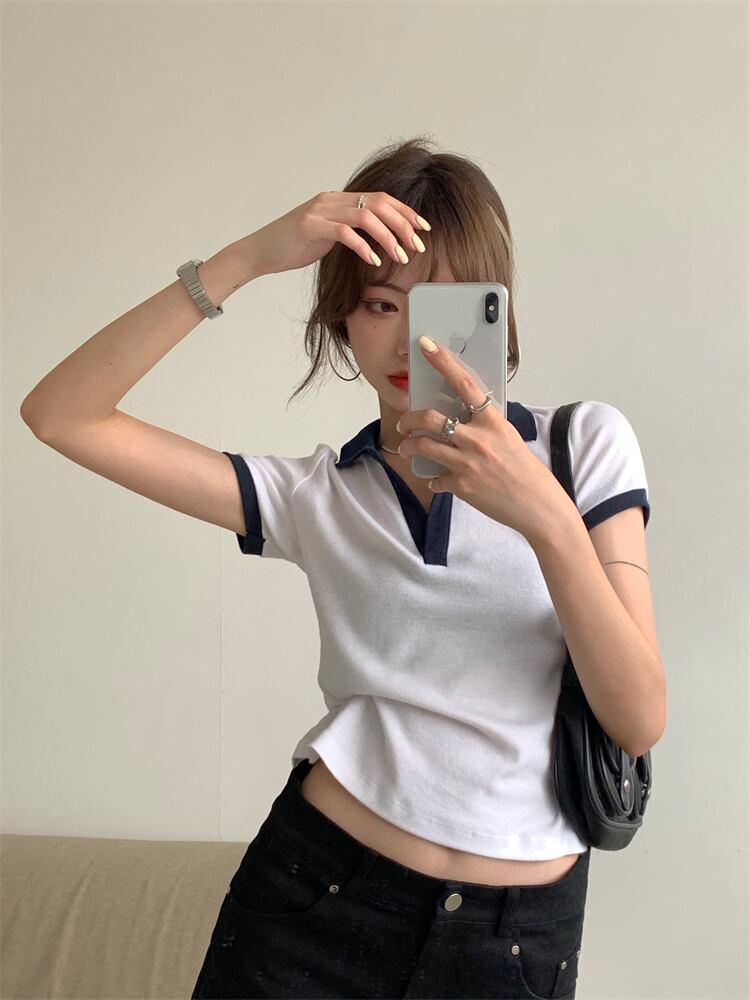 ショートスリムカラーTシャツ サマーレッドトップス 夏物 モンロー92126679054