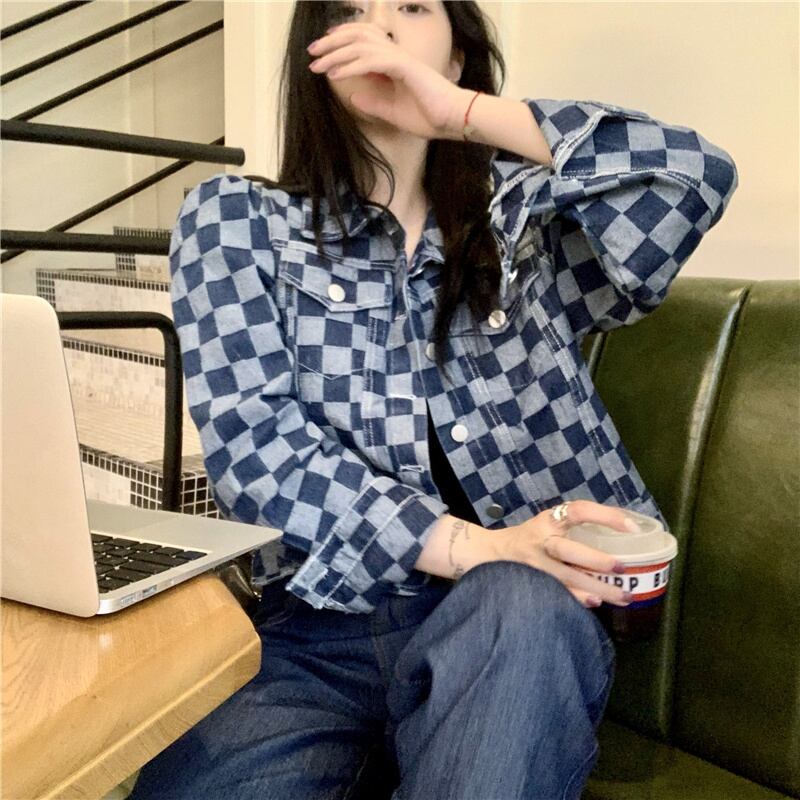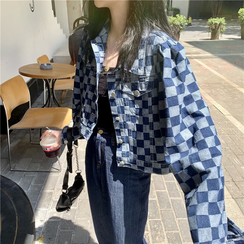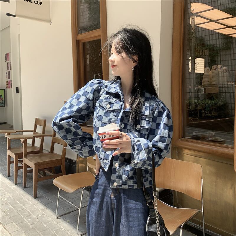 スタイルスタンダード格子柄ジャケット スプリングオータムクロップドトップス レトロ 春物 秋物 モンロー89214594298
