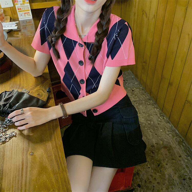 カラーショートニットカーディガン薄手コート サマートップス 大人ガーリー スウィート キュート カジュアル 夏物 モンロー48102980973