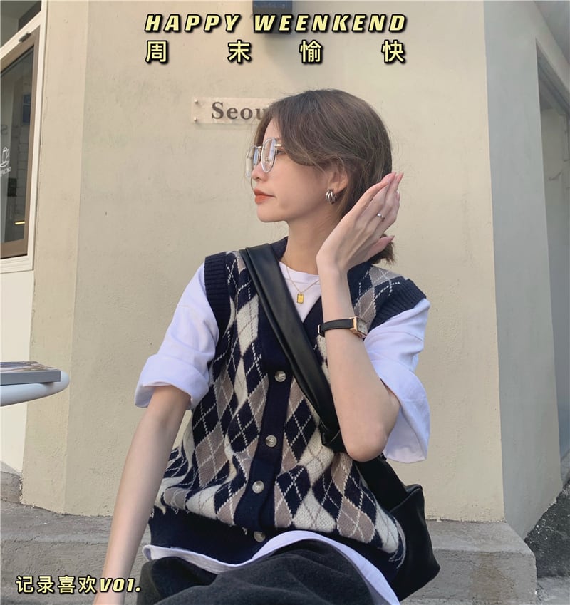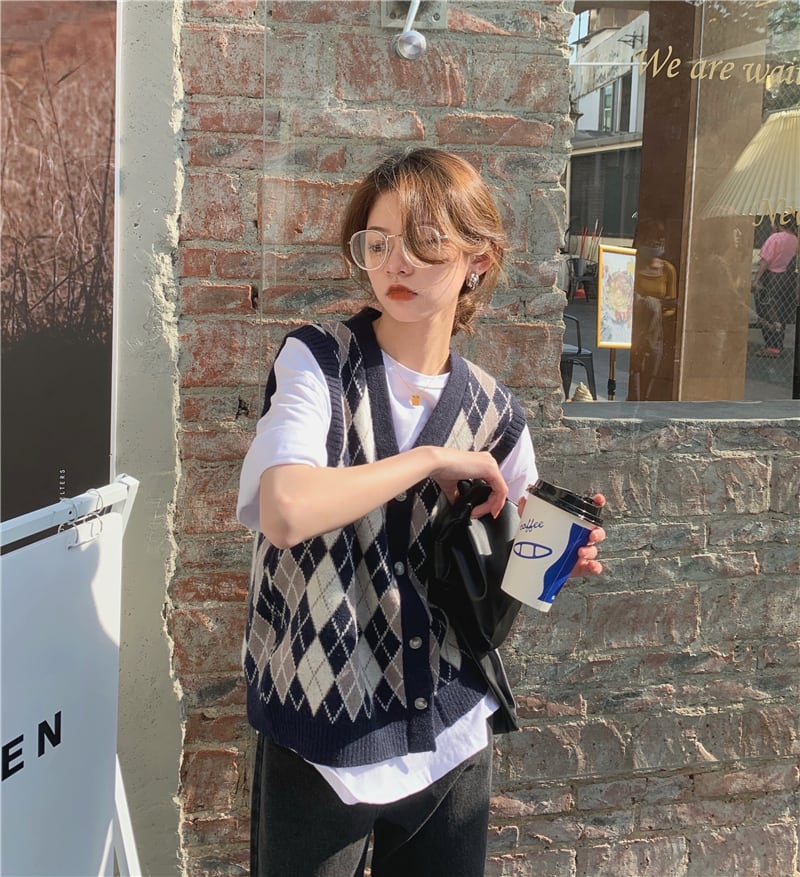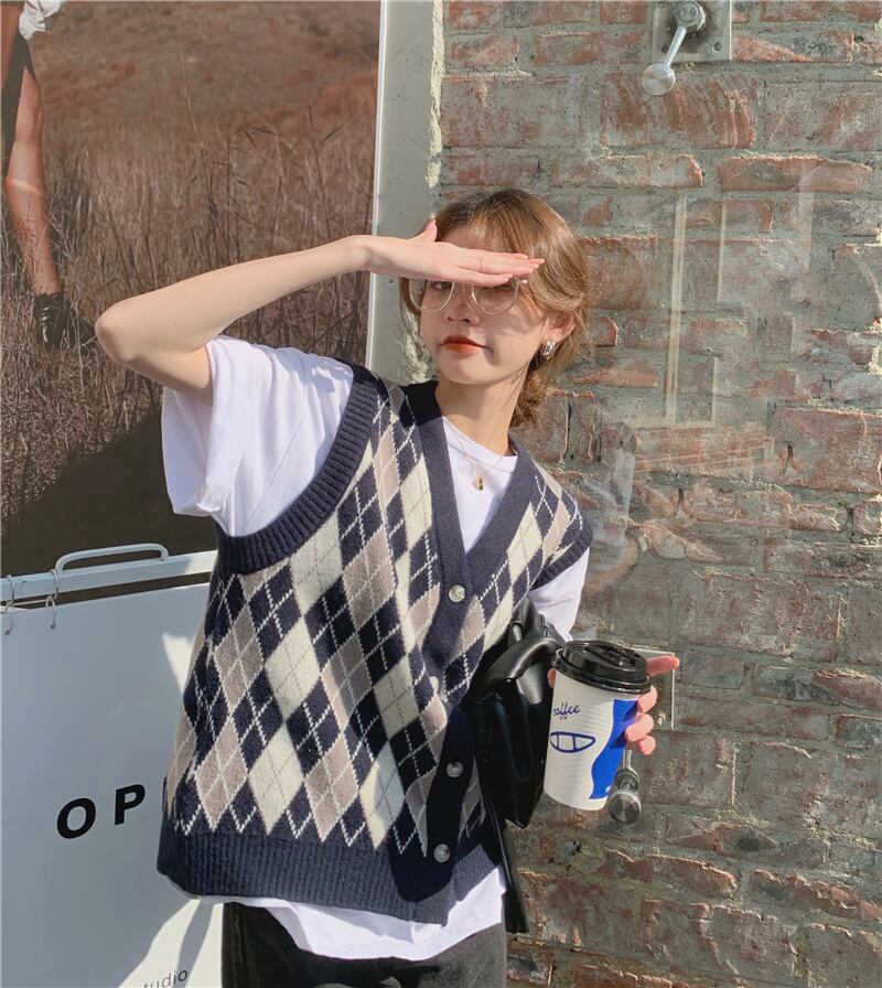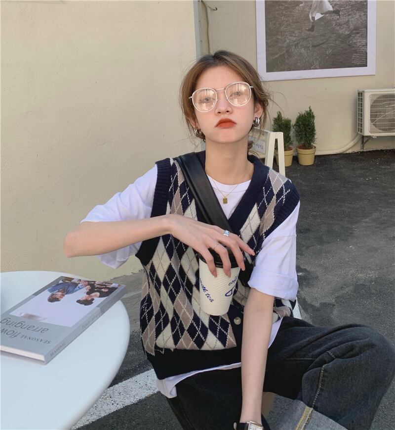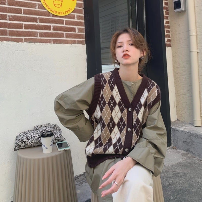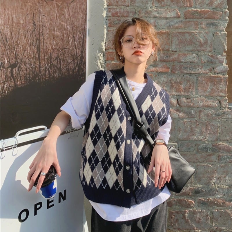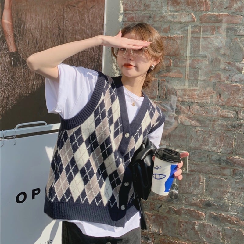 スタイルスタンダードVネックニットカーディガンオータム薄手セーター ジャケット ノースリーブトップス レトロ 秋物 モンロー22449567071