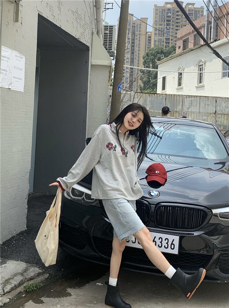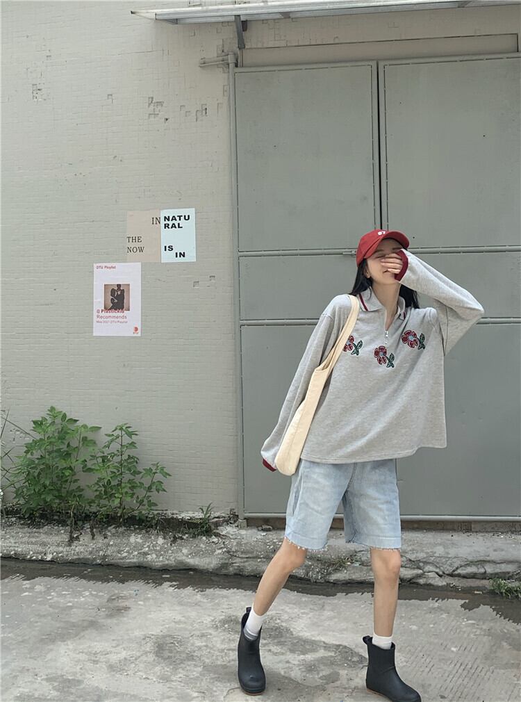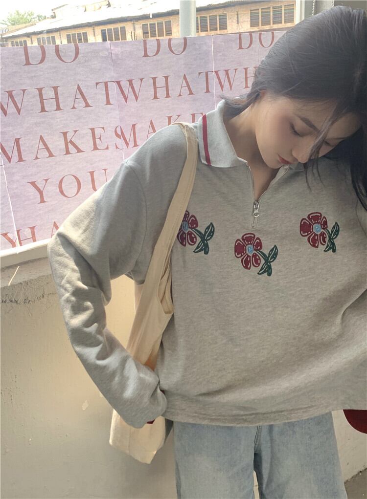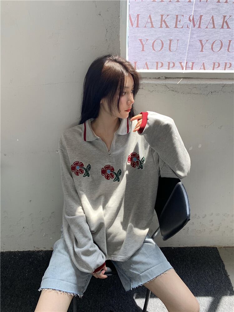 スタンダードカラールーズグレーセーター 薄手コート スプリングオータムトップス ロング レトロ 春物 秋物 モンロー98087407217