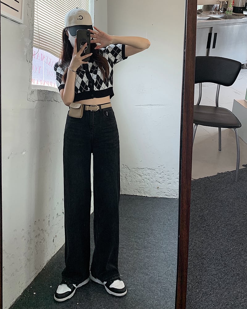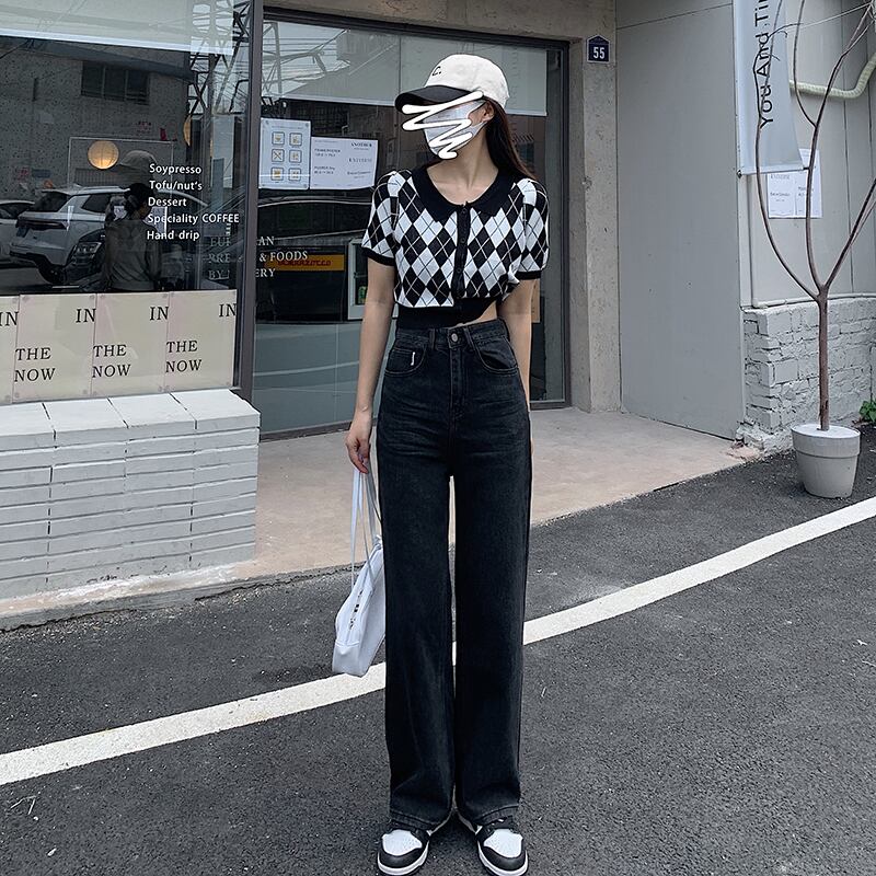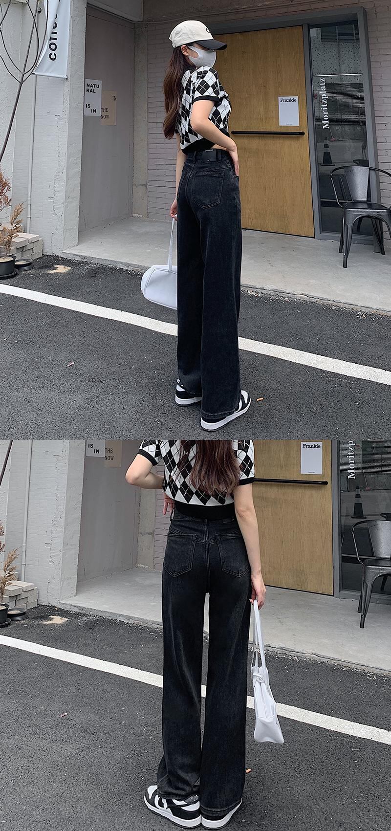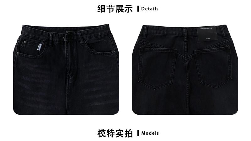 スタンダードブラックハイウェストウェストワイドレッグパンツ スプリングオータム薄手ルーズ レトロ 春物 秋物 ワイドパンツ モンロー64714933279