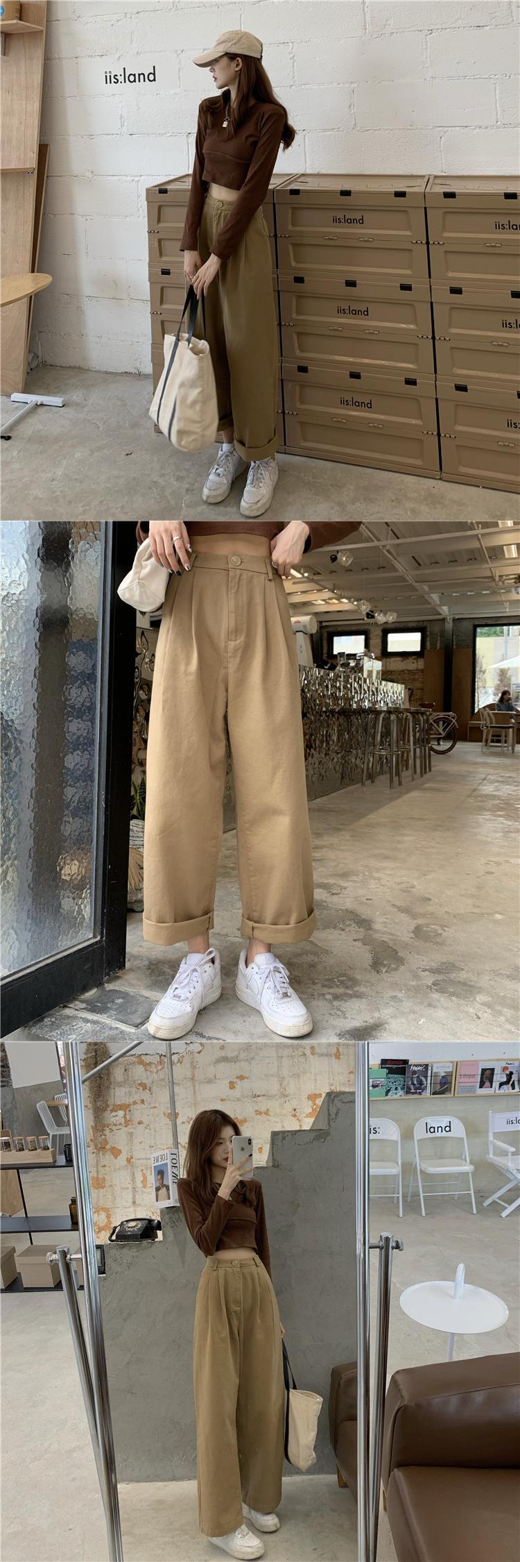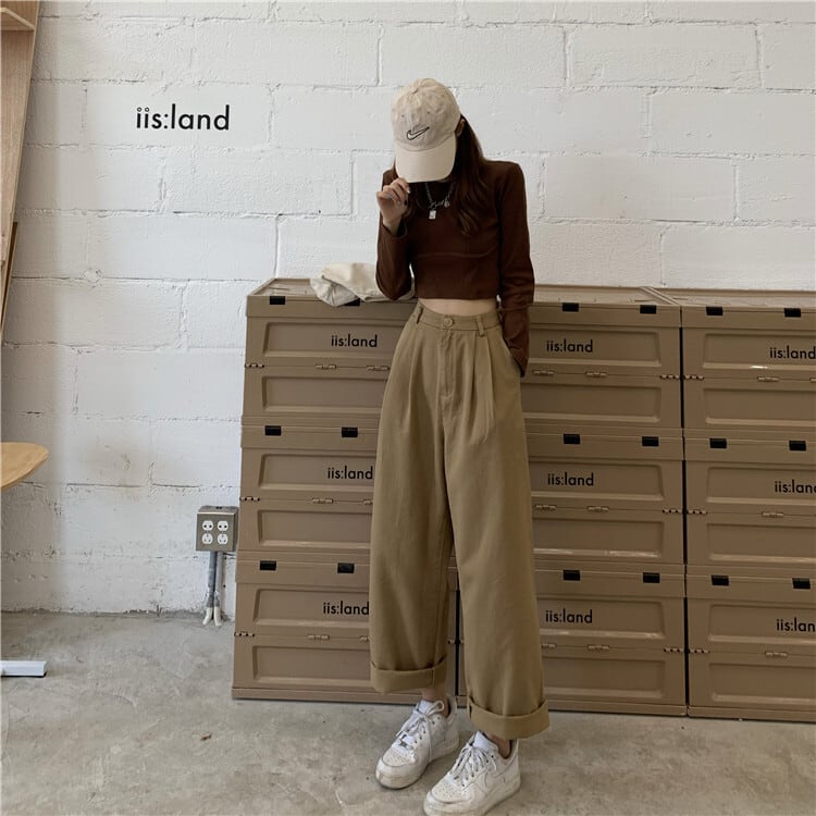 カーキハイウェストウェストカジュアルパンツ レディーススプリングオータム薄手ルーズロングサマー 春物 夏物 秋物 モンロー95821473679
