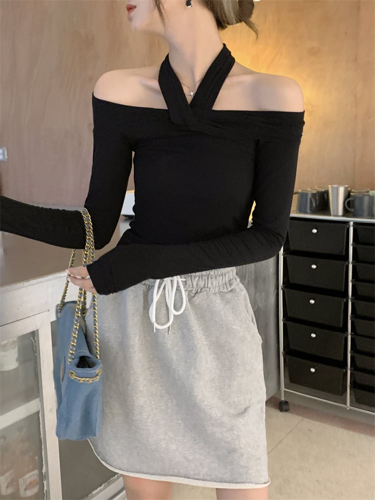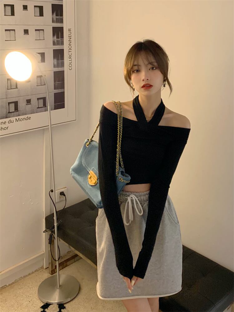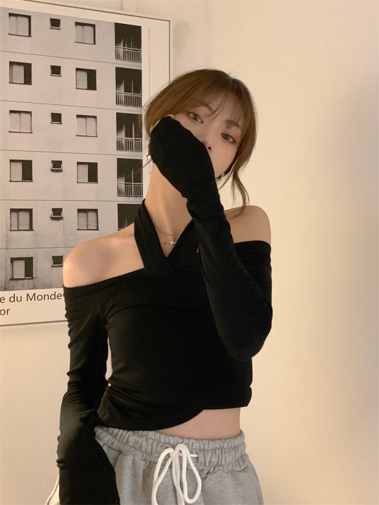 スリム薄手Tシャツ サマーストラップレス長袖スリーブトップス ロング 夏物 モンロー21129472532