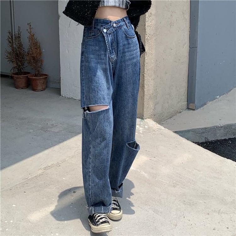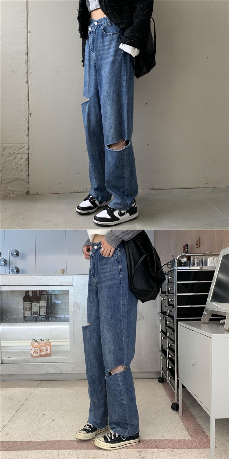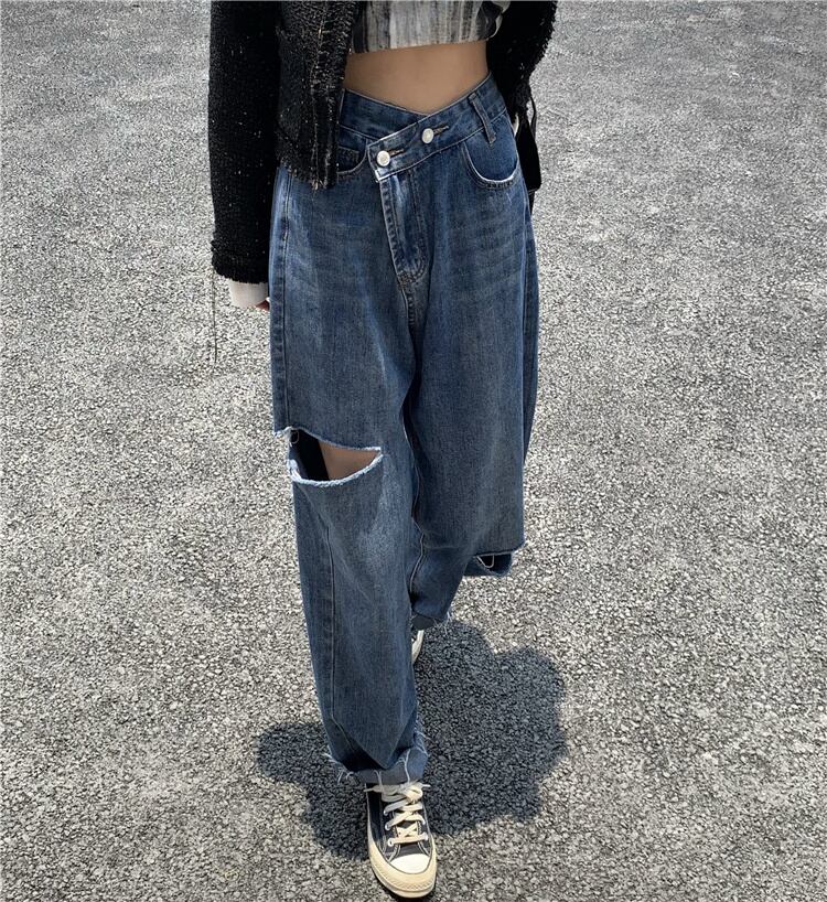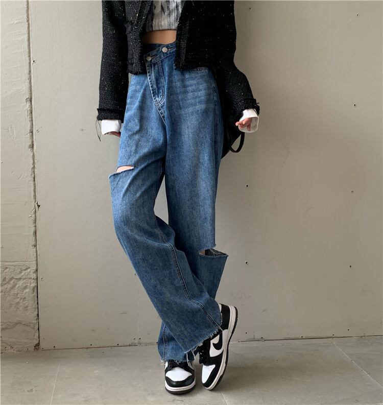 ルーズバックルジーンズ オータムハイウェストパンツ 秋物 モンロー26664445637