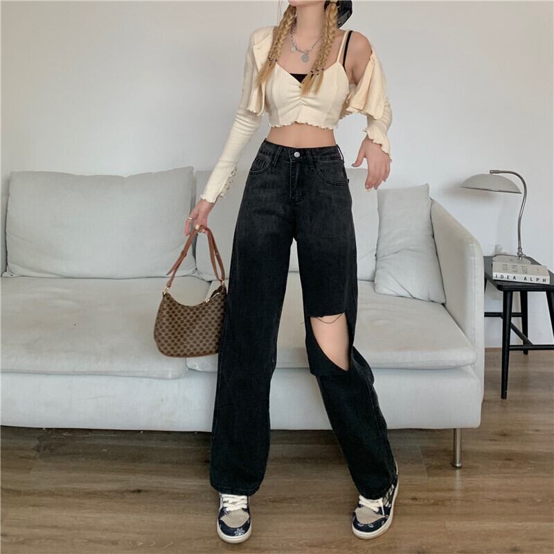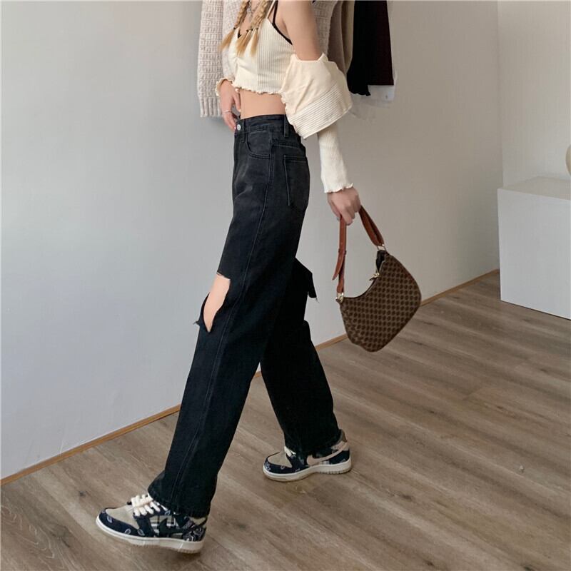 ブラックワイドレッグパンツ スプリングオータム薄手ウェストルーズ 春物 秋物 ワイドパンツ モンロー21358917190