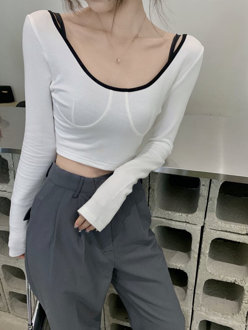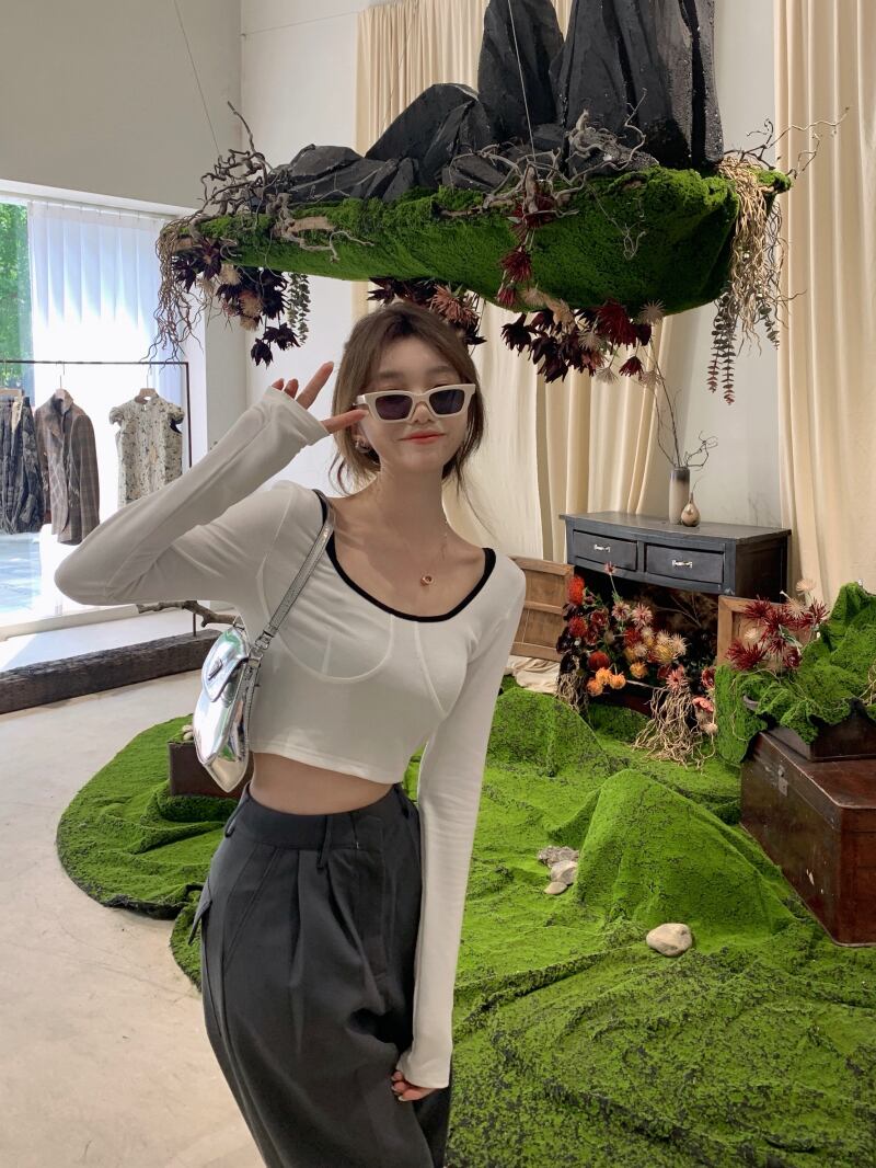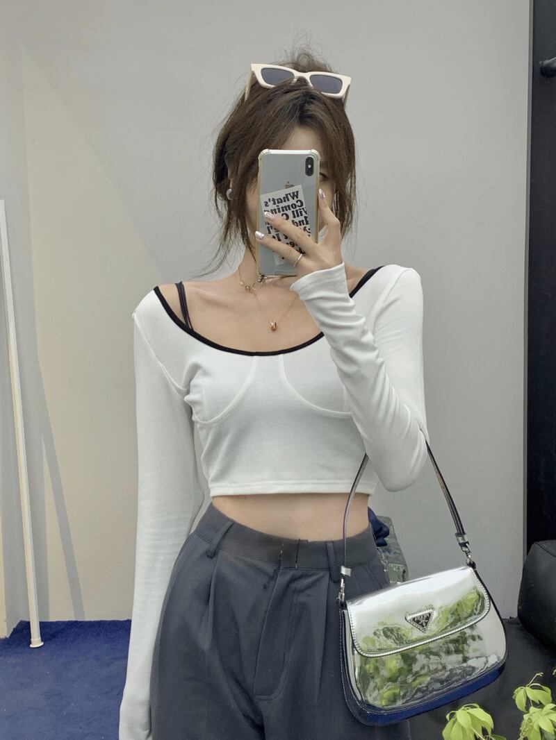 スリムショートブラウス オータムニットTシャツ ストリート 秋物 ピュア モンロー95997967455