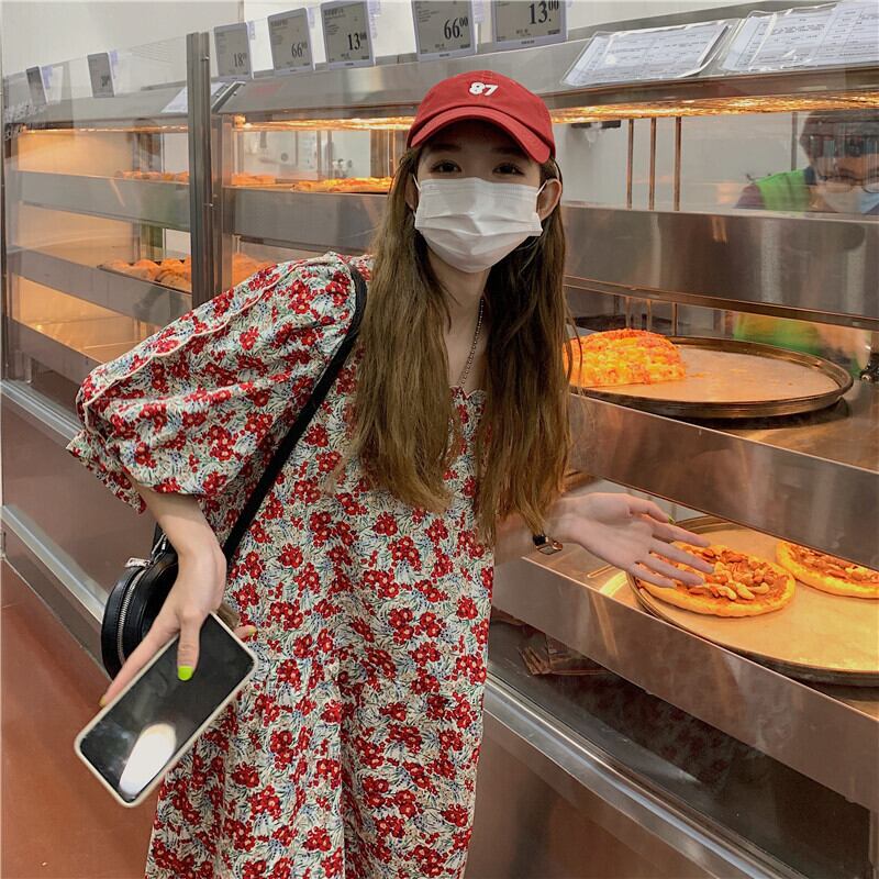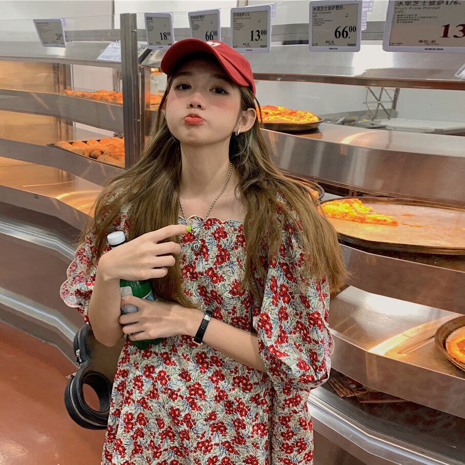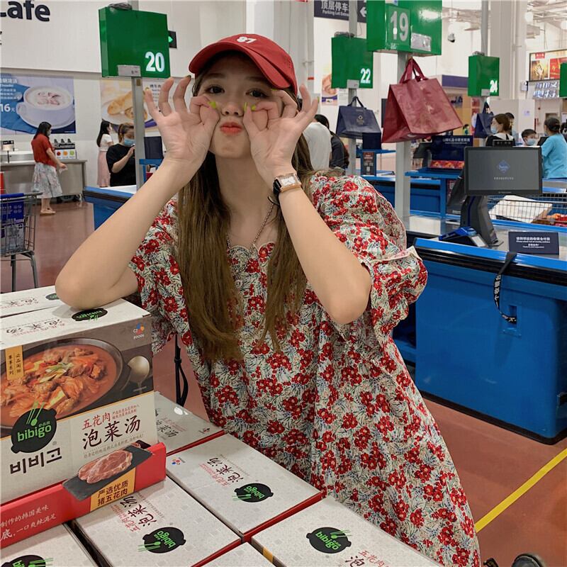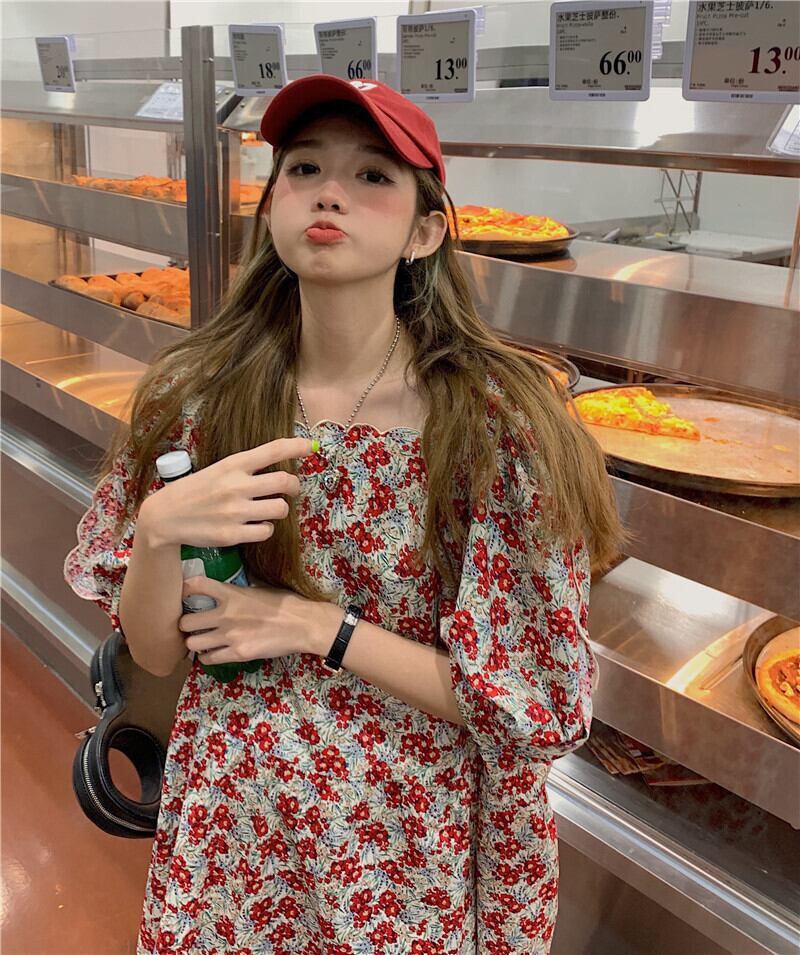 スタンダードフローラルスリーブドレス サマールーズスカート レトロ 大人ガーリー スウィート キュート カジュアル 夏物 花柄 モンロー36294176662