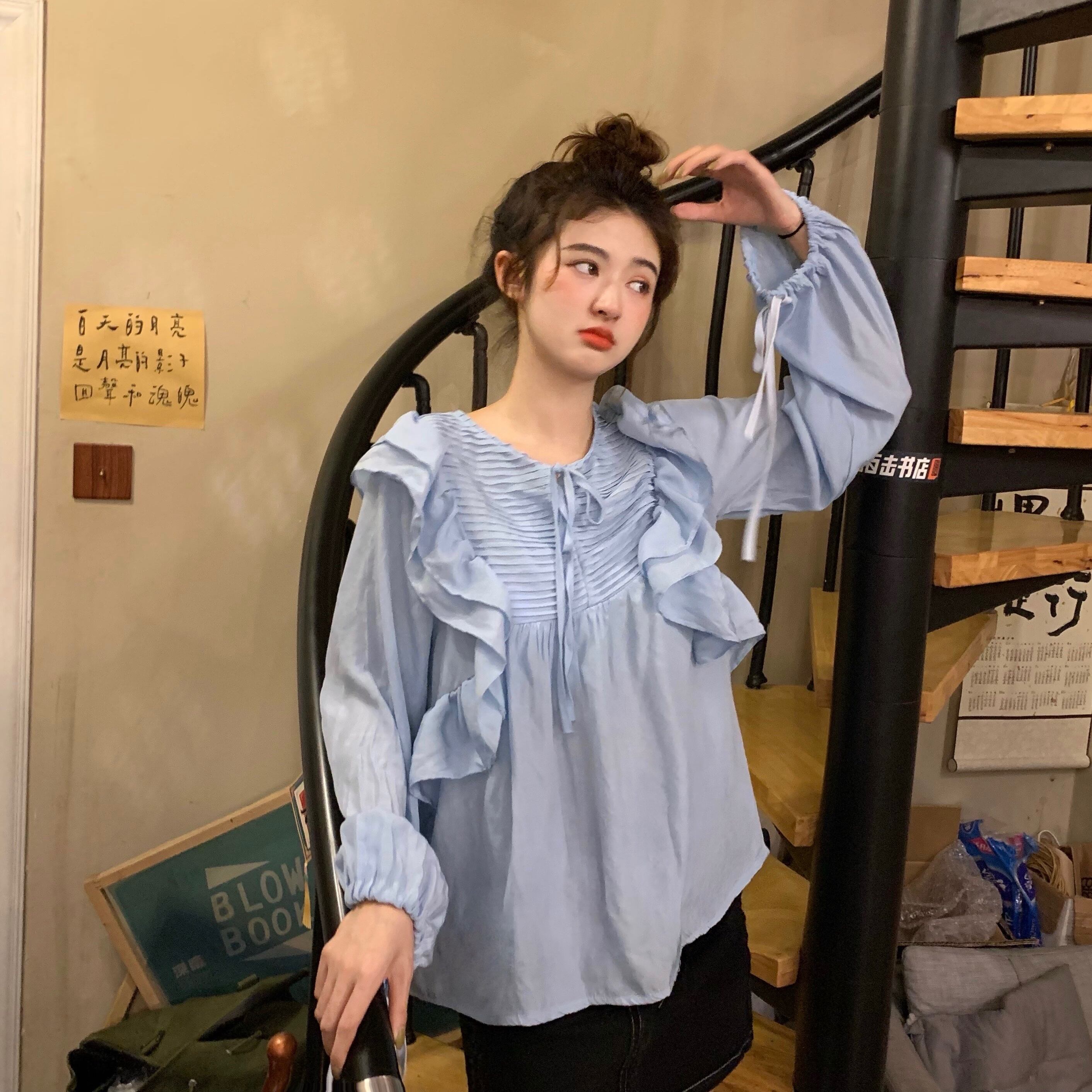 ブルー薄手シャツ トップス サマー ロング 大人ガーリー スウィート キュート カジュアル 夏物 モンロー29368028004