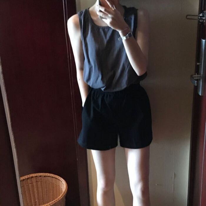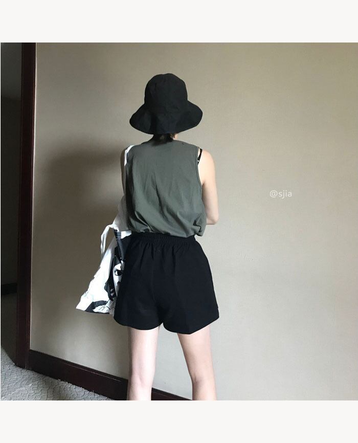 グリーンハイウェストウェストカジュアルショーツ 薄手サマールーズパンツ 夏物 ブルマー モンロー28372346491