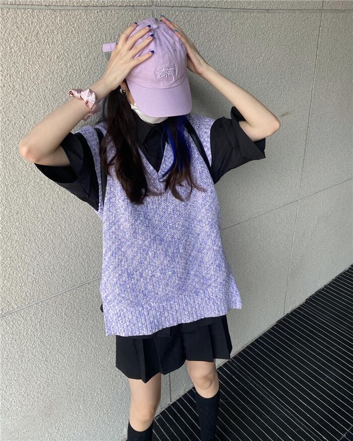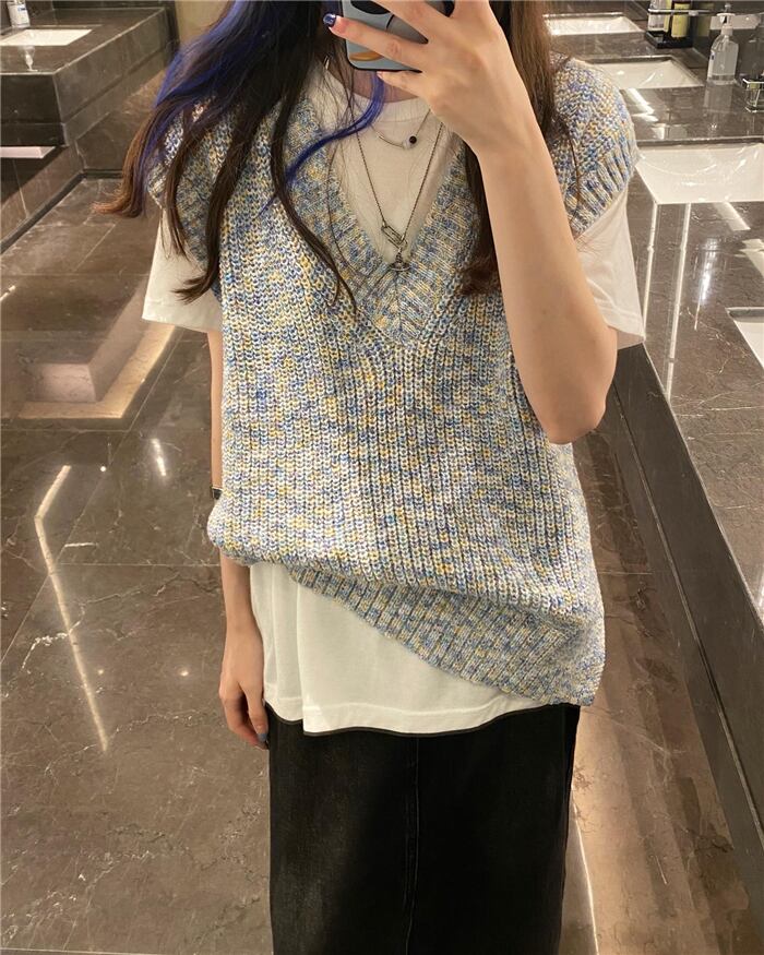 オータムスタンダードVネックノースリーブトップス レトロ 大人ガーリー スウィート キュート カジュアル 秋物 モンロー16617600753