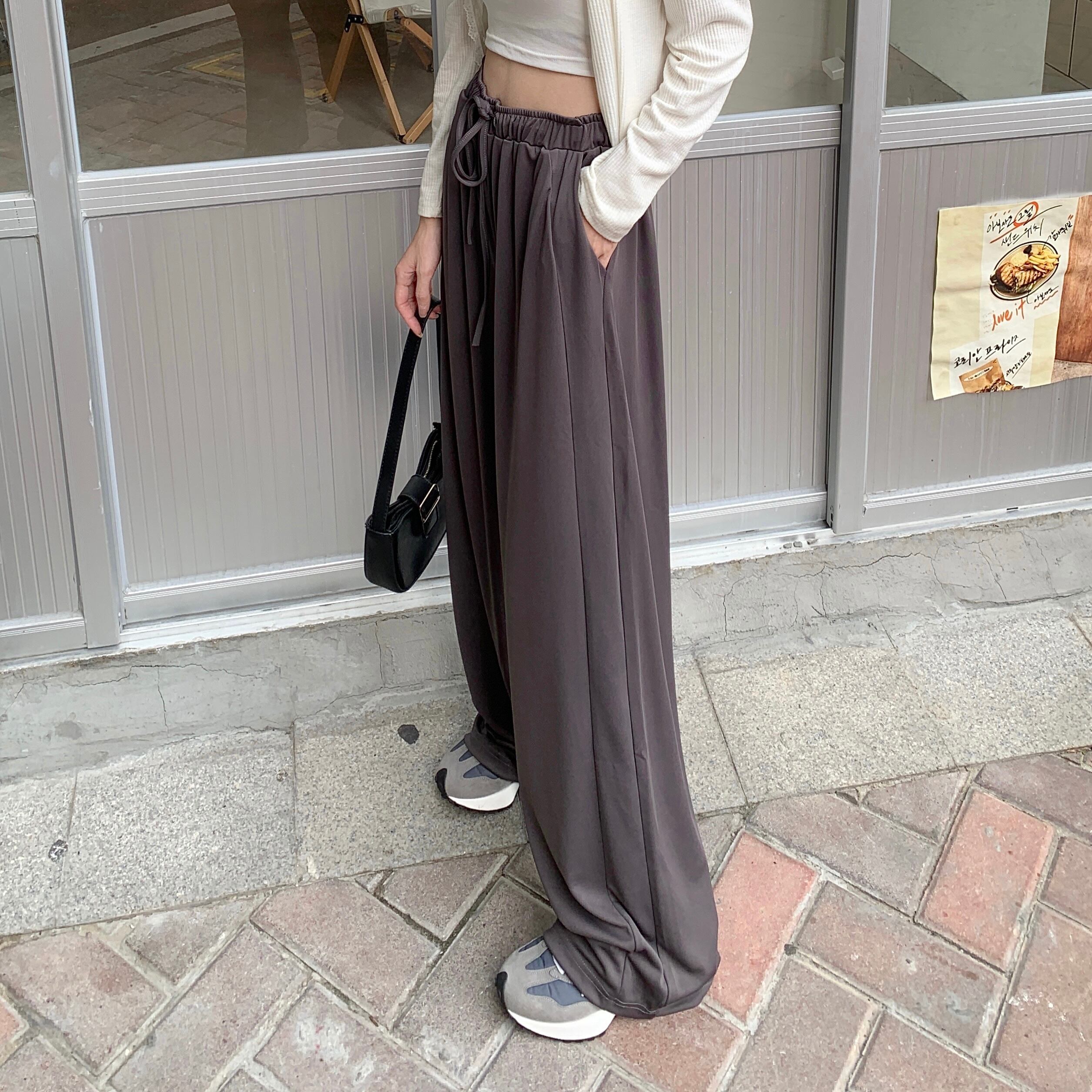 グレーギャザーハイウェストウェストカジュアルパンツ スプリングオータム薄手ルーズサマー 春物 夏物 秋物 モンロー57957594690