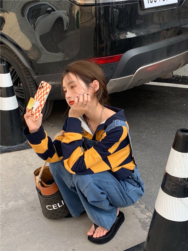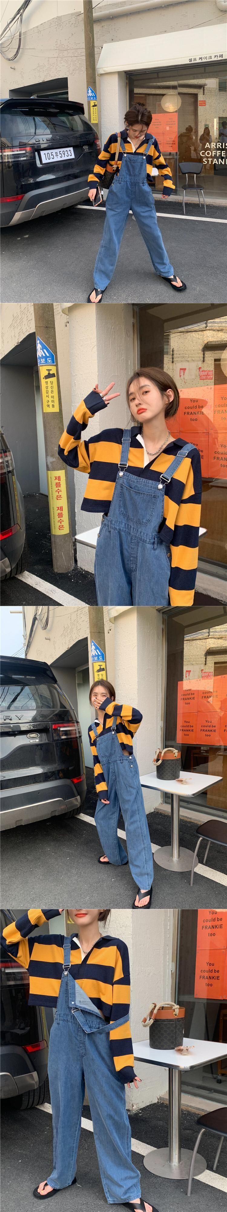 色:ストライプT,ビブパンツ