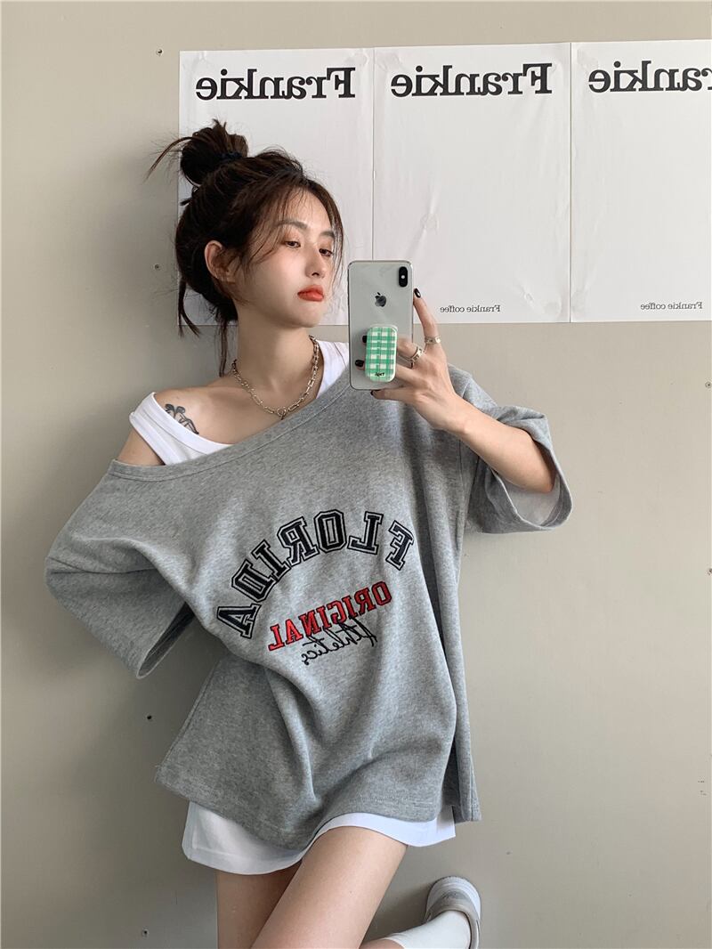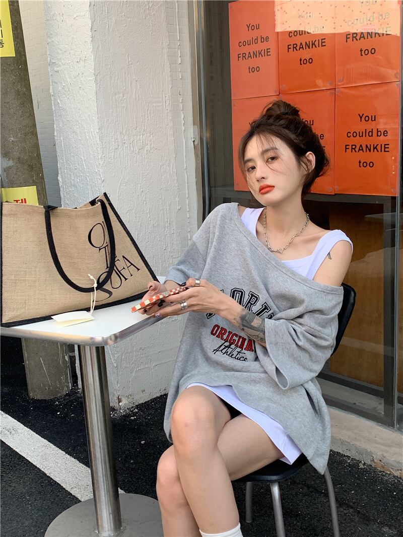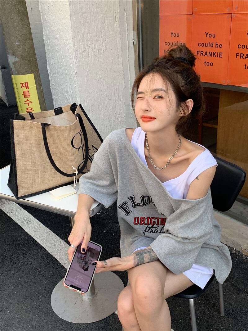 グレーストラップレスルーズTシャツ 薄手サマー 夏物 モンロー73477960163