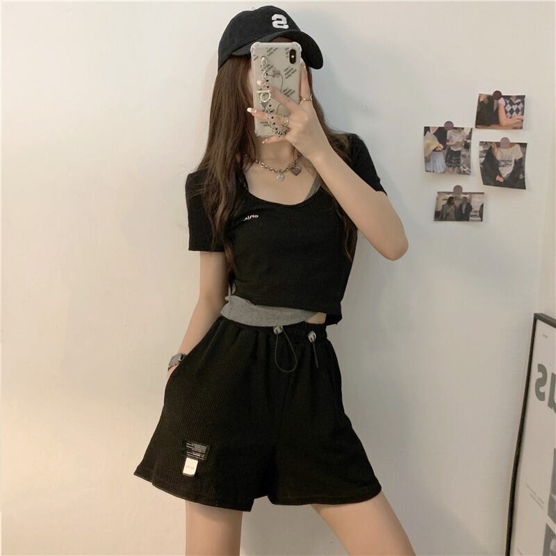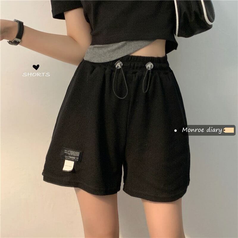 ブラックハイウェストウェストカジュアルショーツ サマー薄手ルーズAラインパンツ 夏物 ブルマー モンロー86731417818