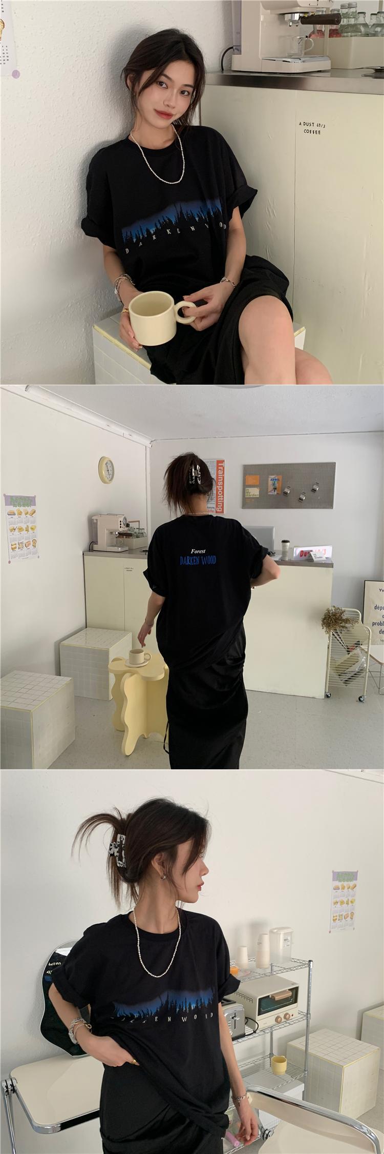 スタイルブラックルーズTシャツ サマートップス かわいい 夏物 モンロー57164689569