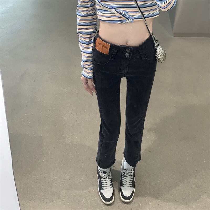 ブラックスタンダードウェストスリムジーンズ スプリングオータム薄手パンツ サマー レトロ 春物 夏物 秋物 モンロー55379233191