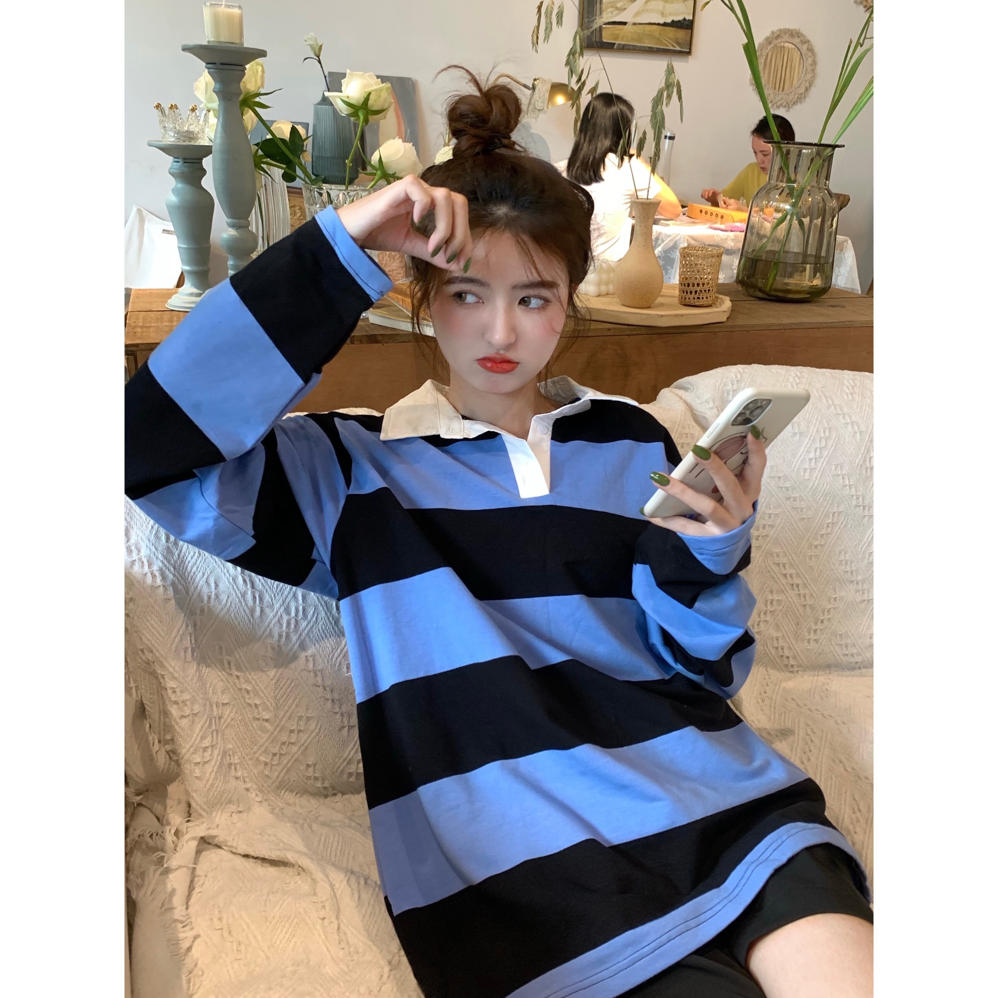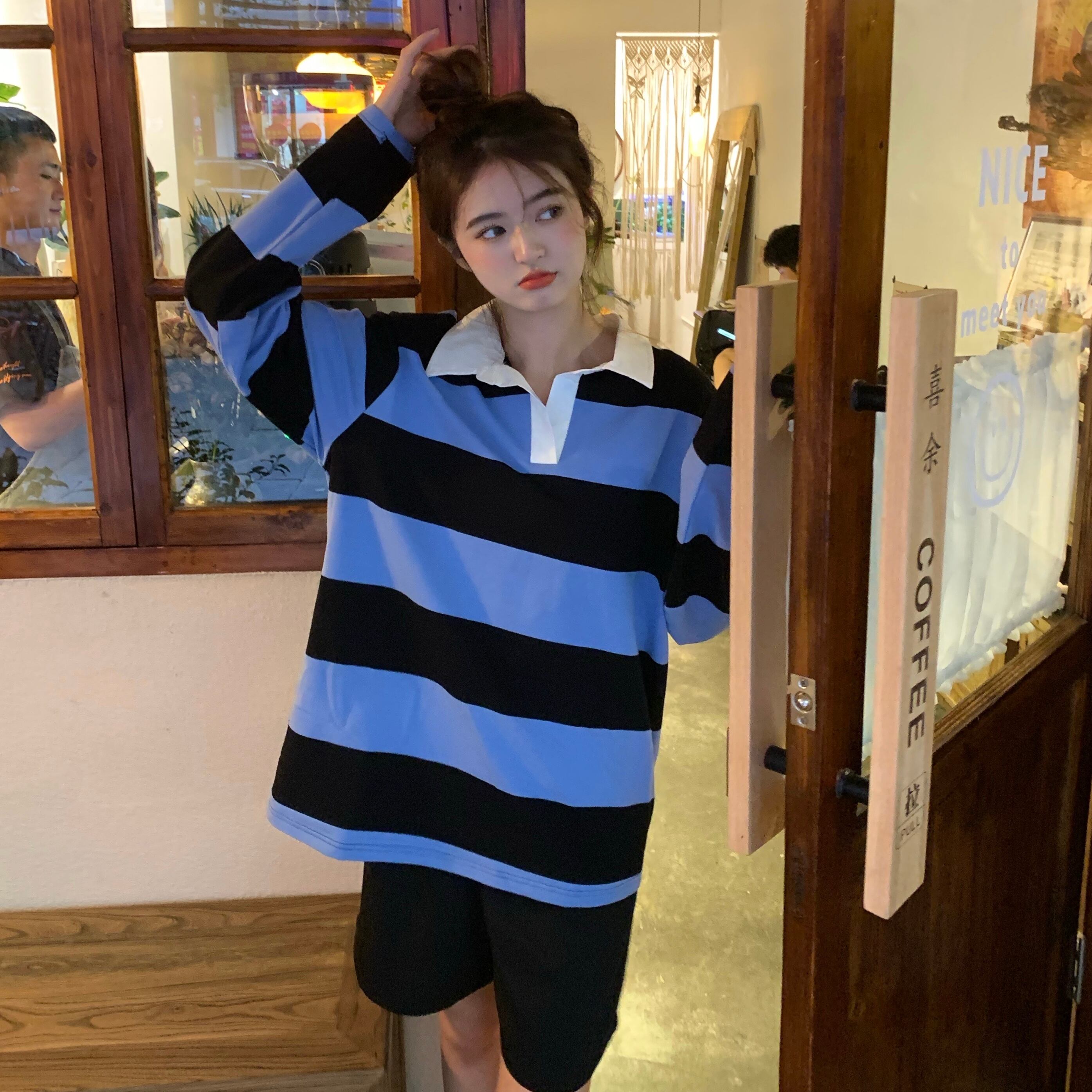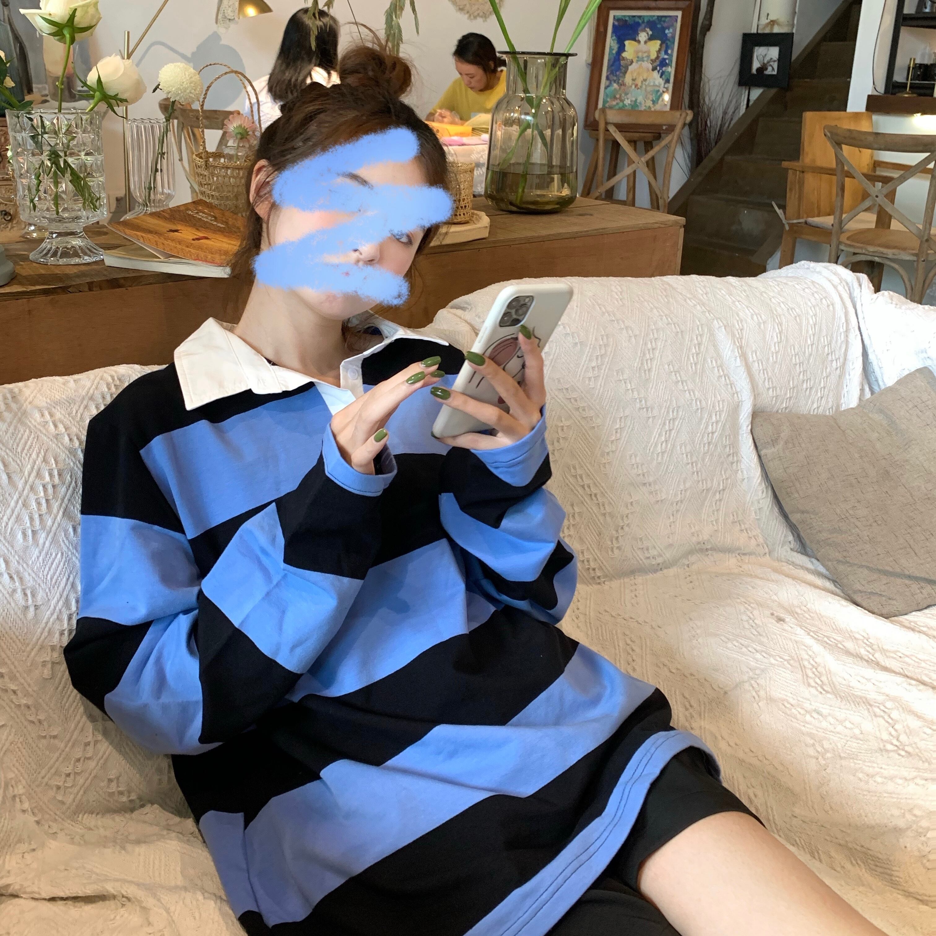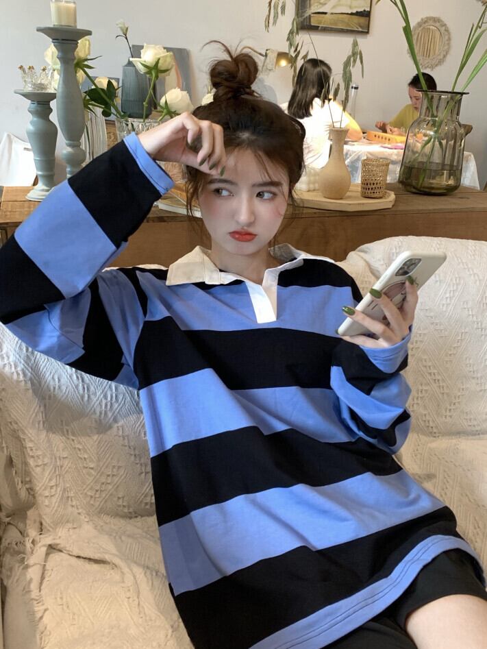 スタイルカラーストライプルーズセーター ジャケット オータム薄手トップス ロング 秋物 モンロー31096406266
