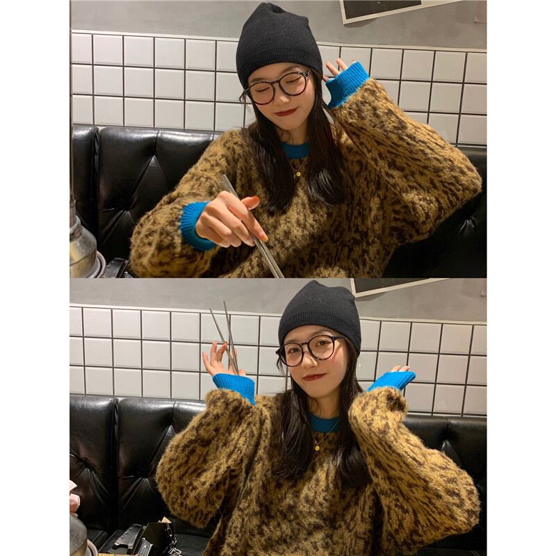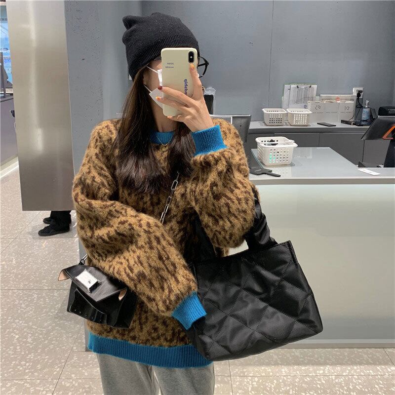スタイルレオパードプリント柄ルーズニットセーター ジャケット オータムスタンダード レトロ 秋物 モンロー14208467389