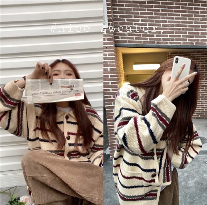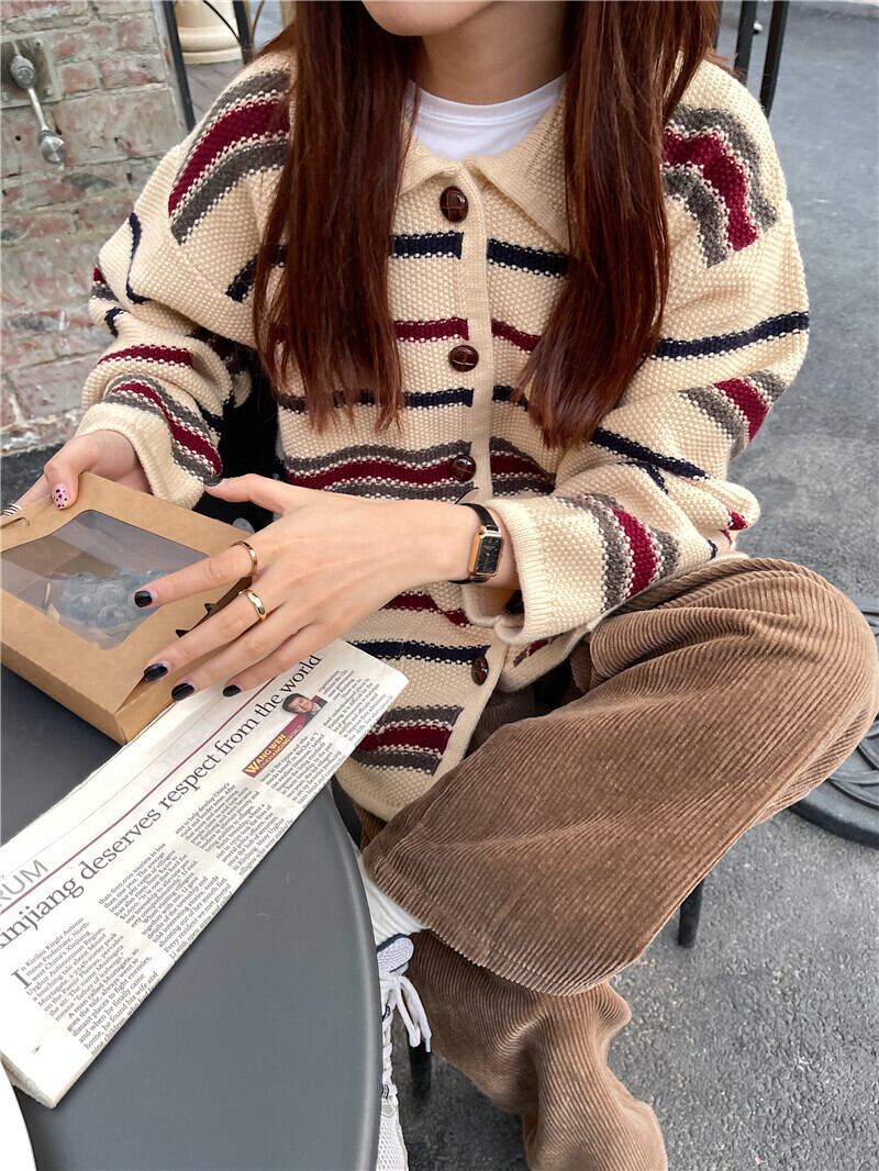 ストライプセーター ジャケット オータムヴィンテージ 秋物 ビンテージ モンロー67074344080