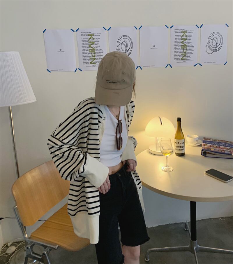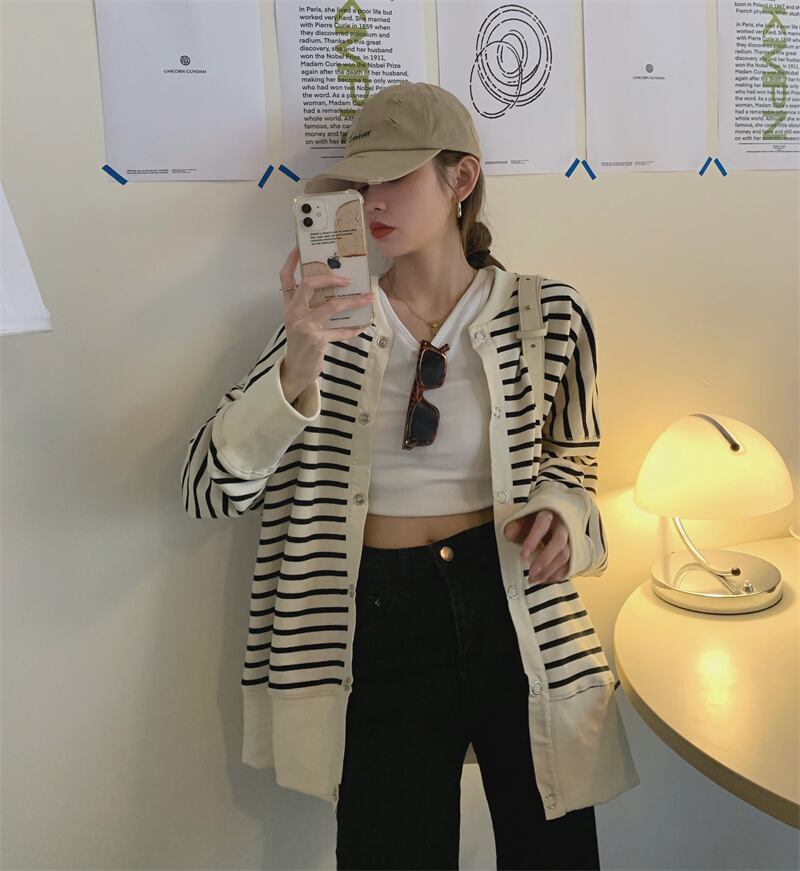 スタイルルーズニットセーター ジャケット オータムストライプトップス ロング 秋物 モンロー89153129074