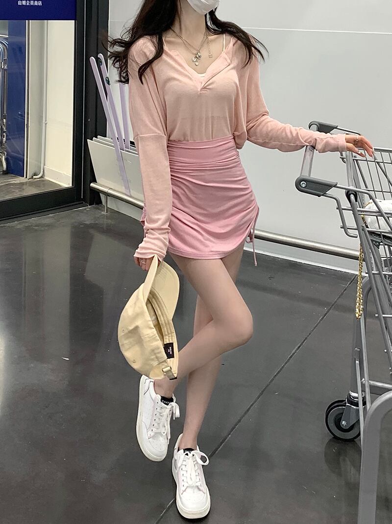 ハイウェストウェストスカート サマースリムフィットショート 夏物 モンロー27166672102
