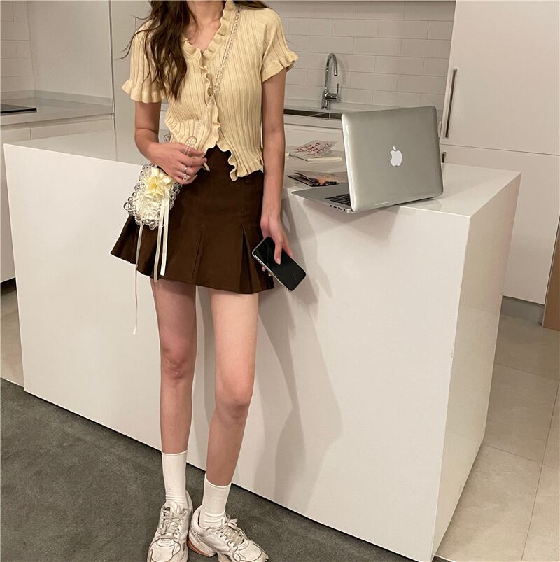 Vネックニットカーディガン薄手ジャケット サマースリムクロップドトップス 大人ガーリー スウィート キュート カジュアル 夏物 モンロー50898689063