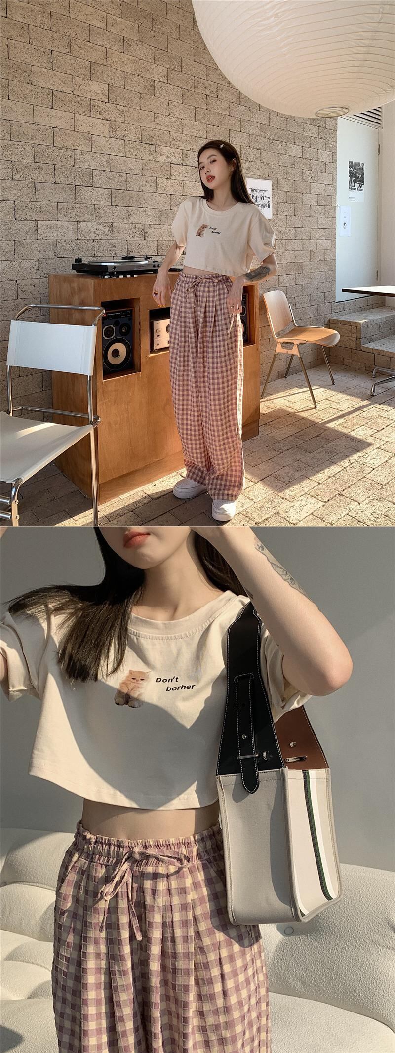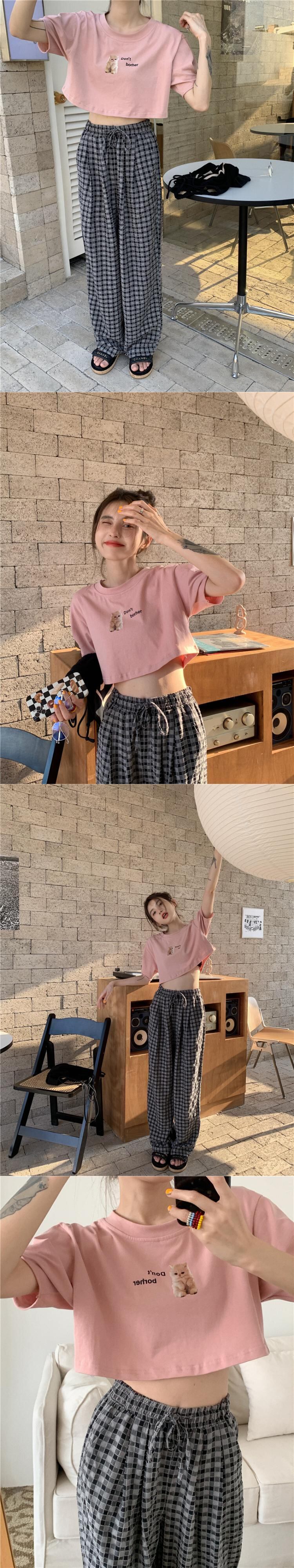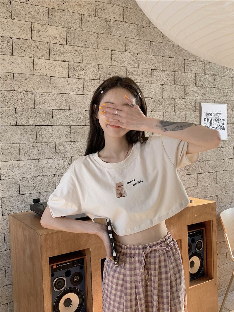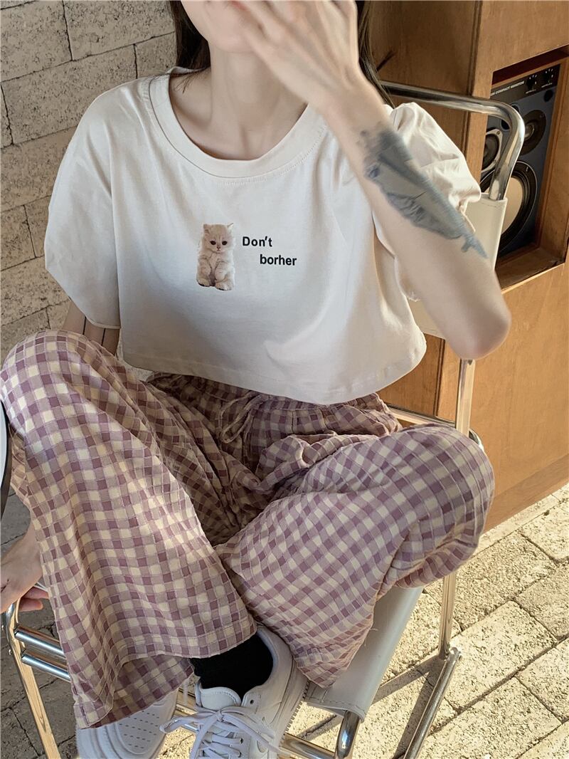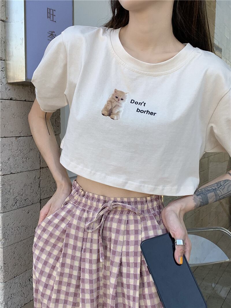 ショートプリント柄Tシャツ サマークロップドカジュアルトップス ピンク 夏物 モンロー40479793516