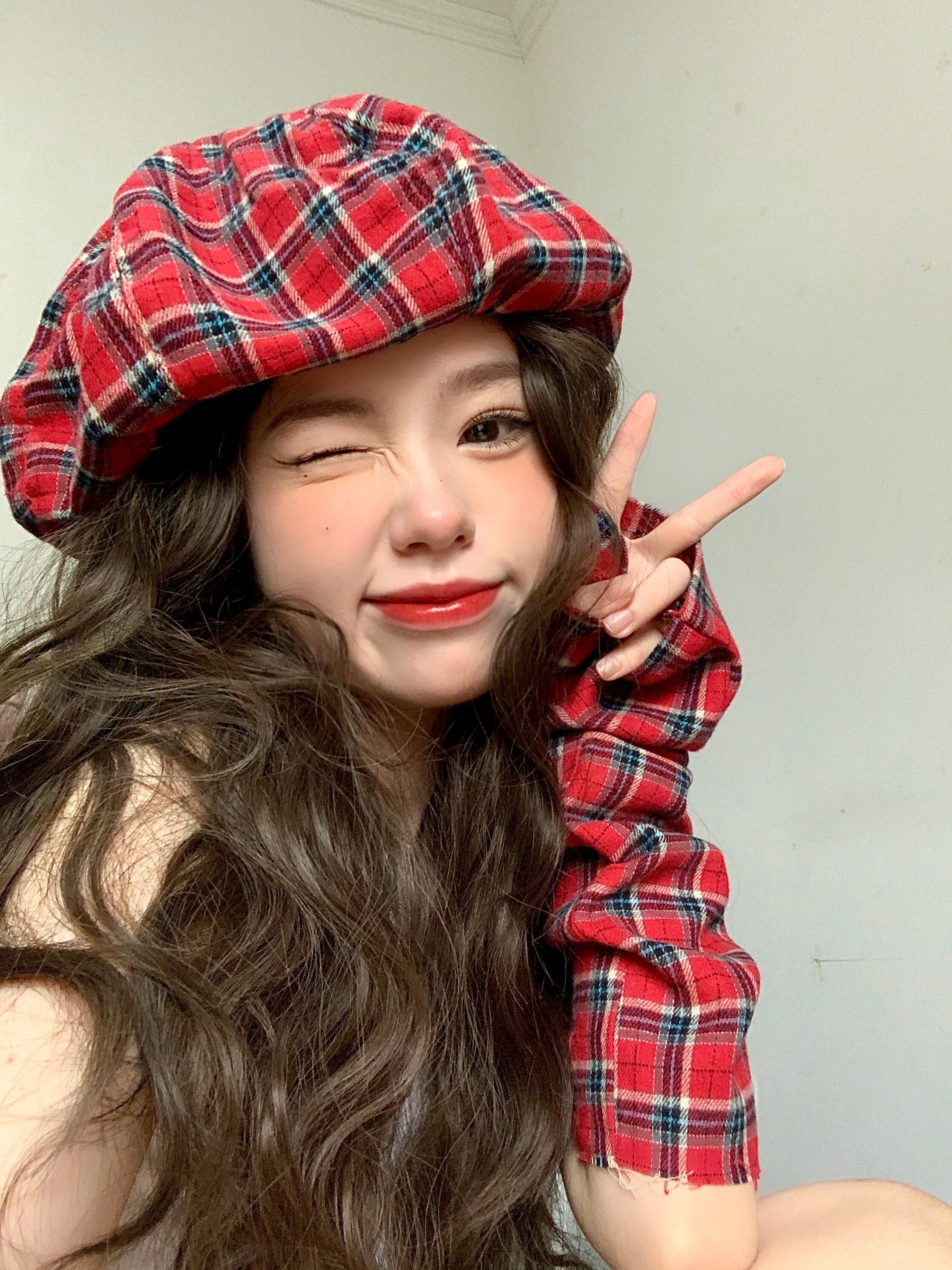 格子柄レッドサマーカジュアル薄手 帽子 夏物 ベレット ヘアアクセサリー モンロー37226303909
