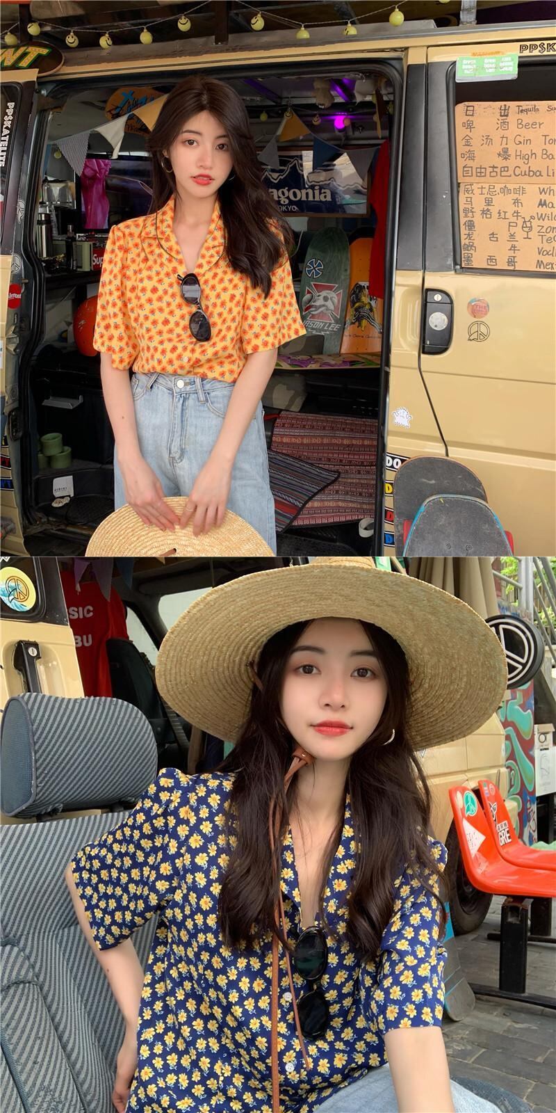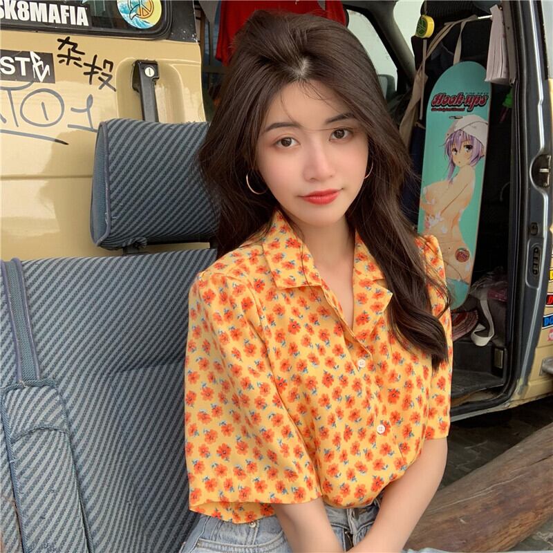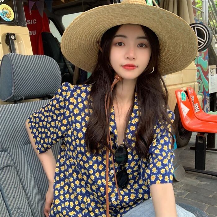 スタンダードフローラルシャツ サマートップス コート レトロ 夏物 花柄 モンロー27451695664