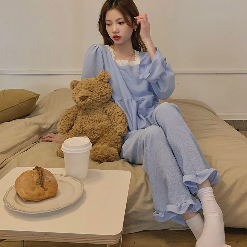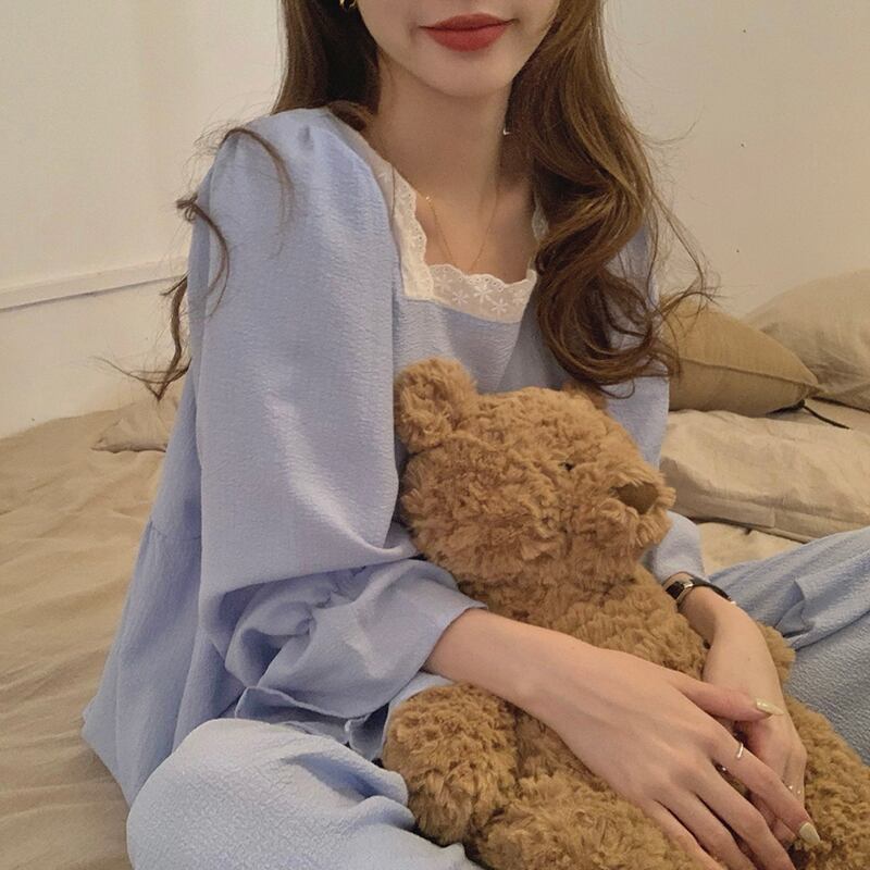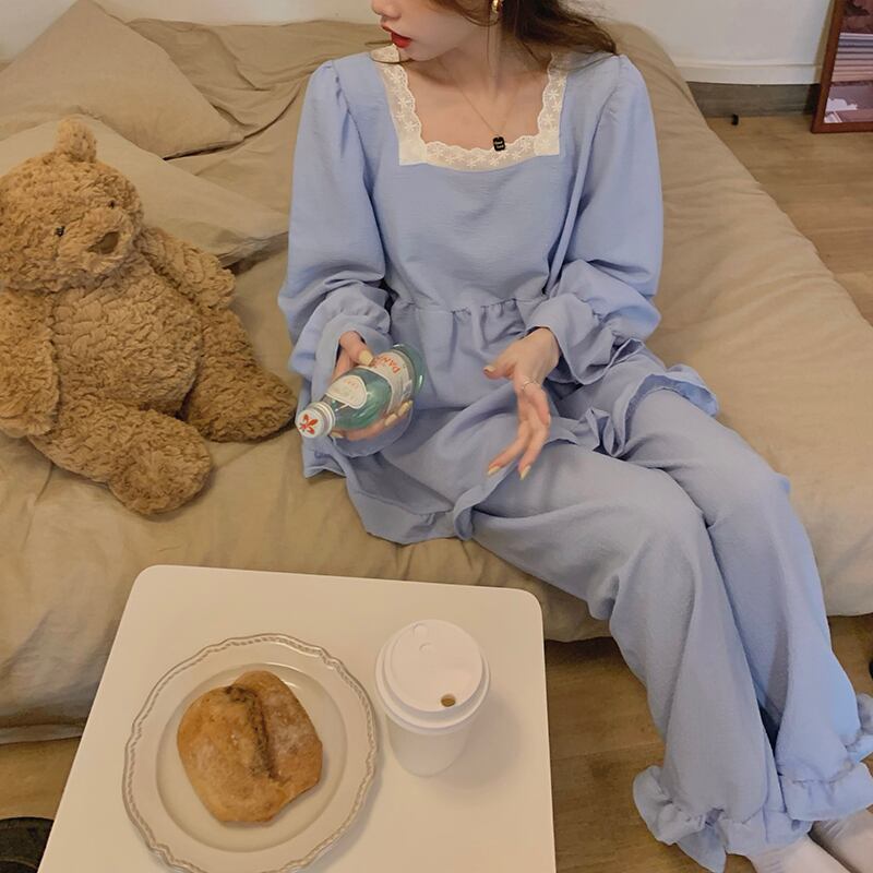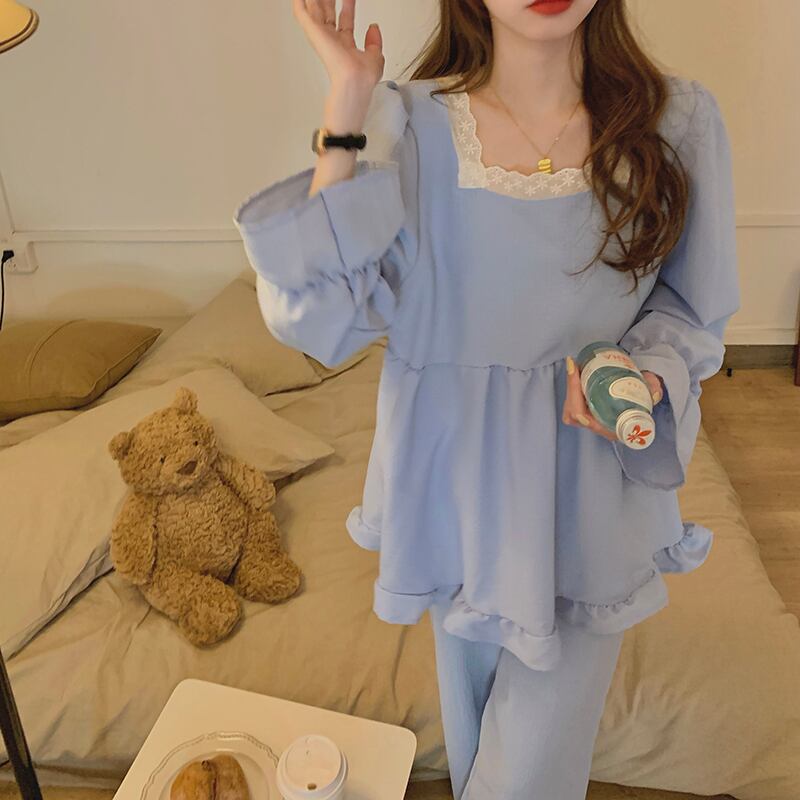 色:ブルースクエアネックパジャマセット